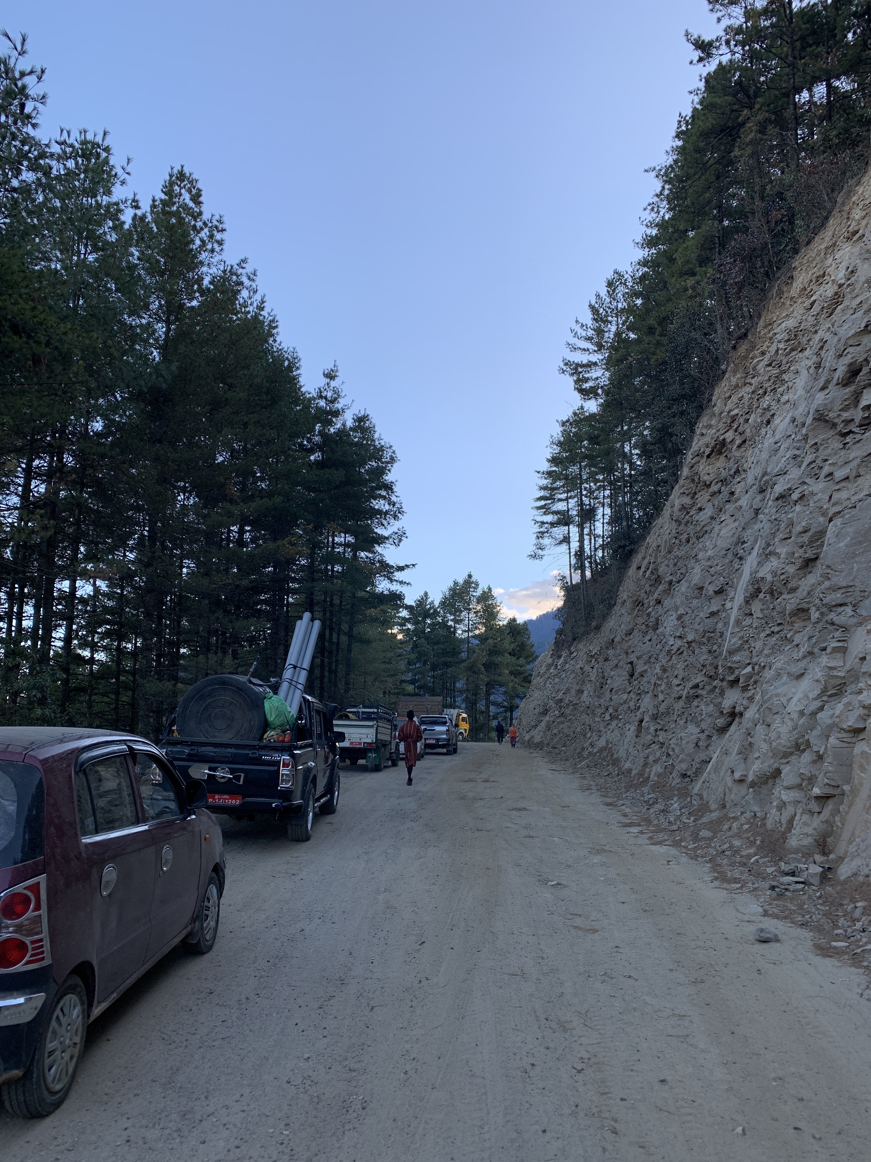 Enroute, we passed Thimphu and then broke off from the main road and headed for the Haa valley. All was going well, we were making good time on the double lane paved road, and then paved single track until we came across road construction. We had to wait a half hour until the workers were finished for the day,and then we proceeded carefully along the road which was now dirt and girded with huge boulders! An interesting strategy to road construction I must say!