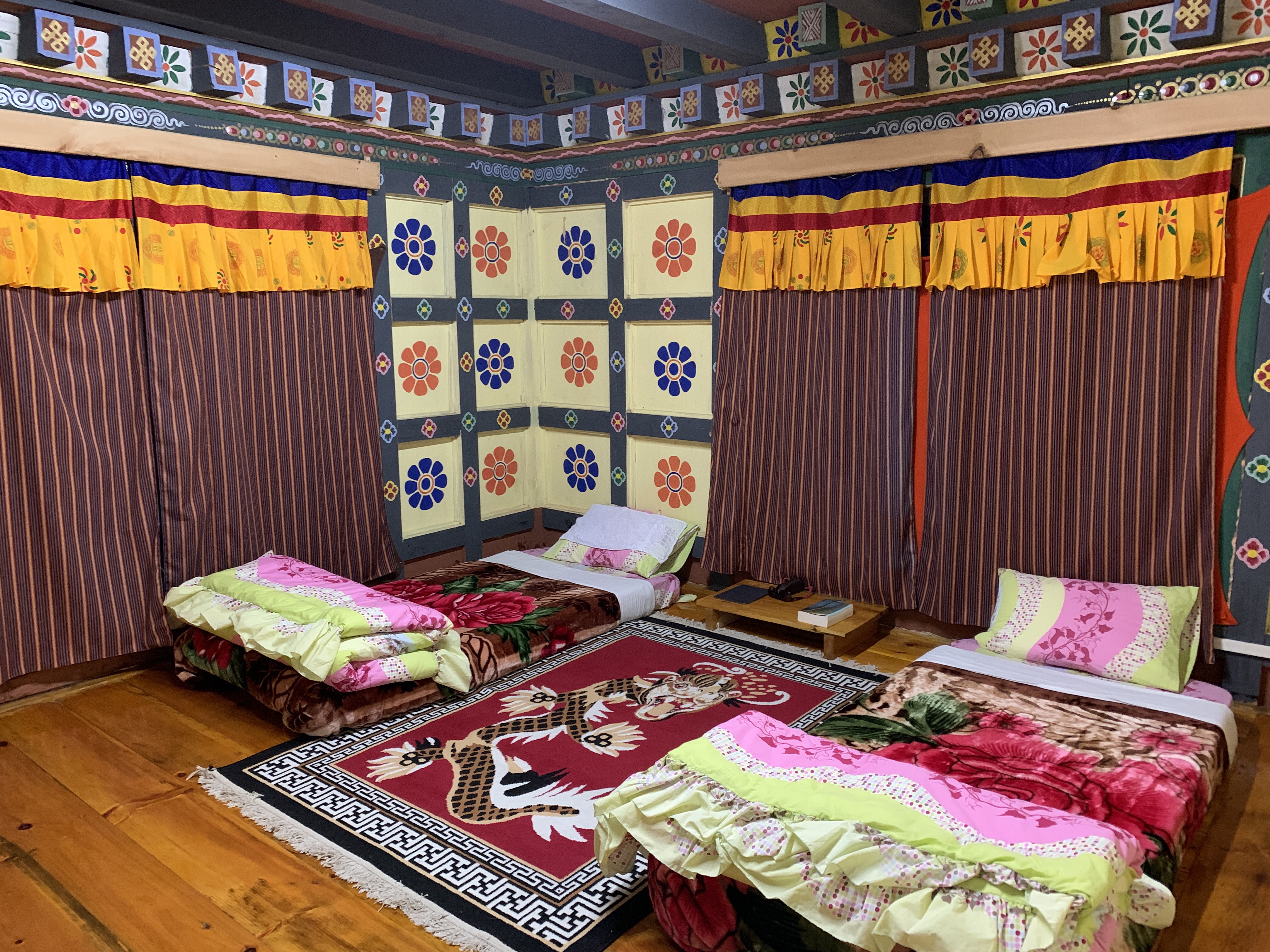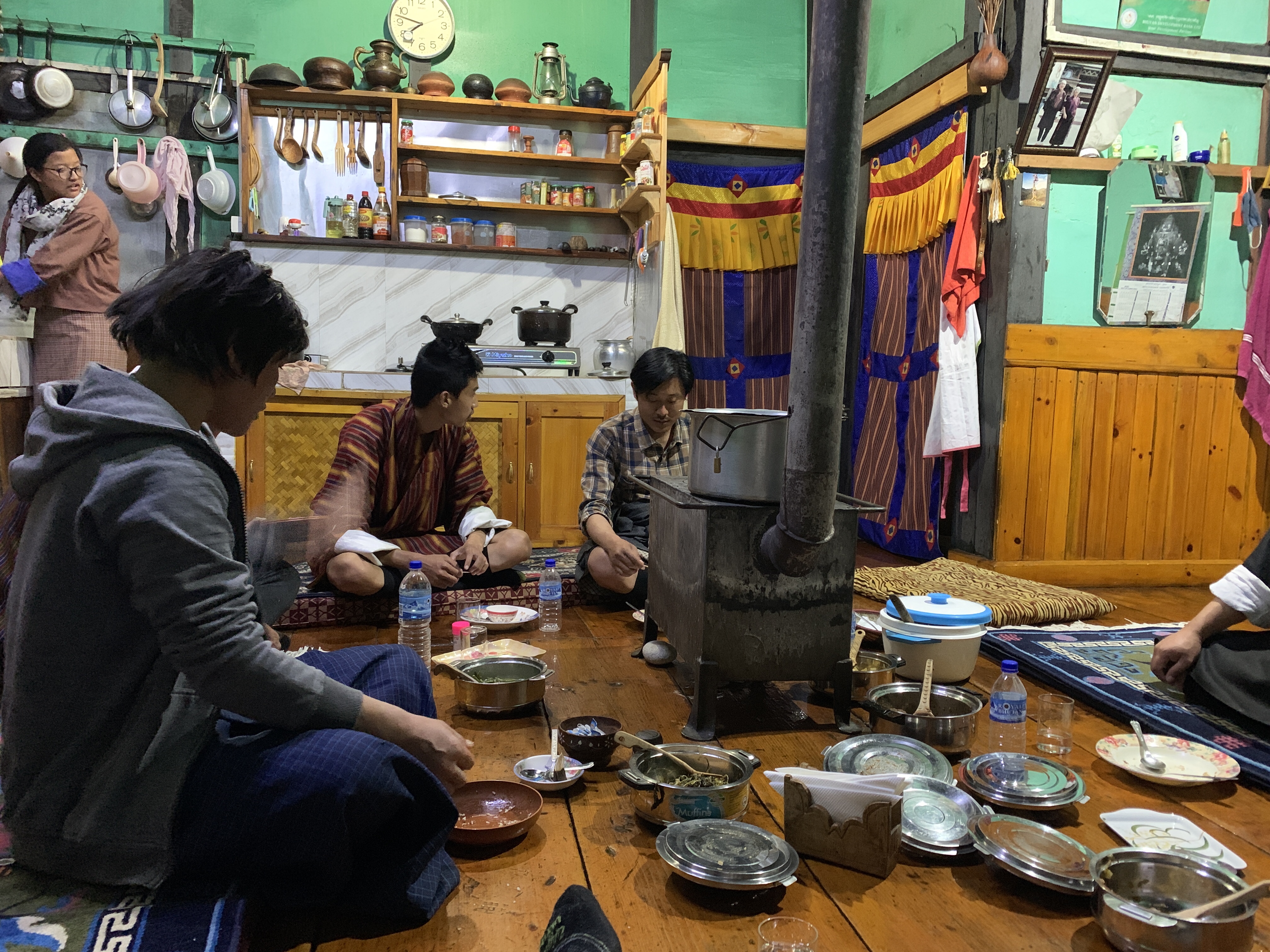 Our homestay is simple, but the family is very welcoming! When we arrived we immediately went in to the dining room for tea and then dinner. The homemade food was delightful! My biggest challenge was figuring out how to eat on the floor! After today’s hike and then a 5 hour car ride, my legs aren’t flexible enough to sit in lotus position for any length of time! After a wonderful meal, Dan and I chatted with a couple of guests who were having a weekend off from their work/school term in Paro. We shared lots of stories, but after our long day it was time to say goodnight! So, my friends, until next time!