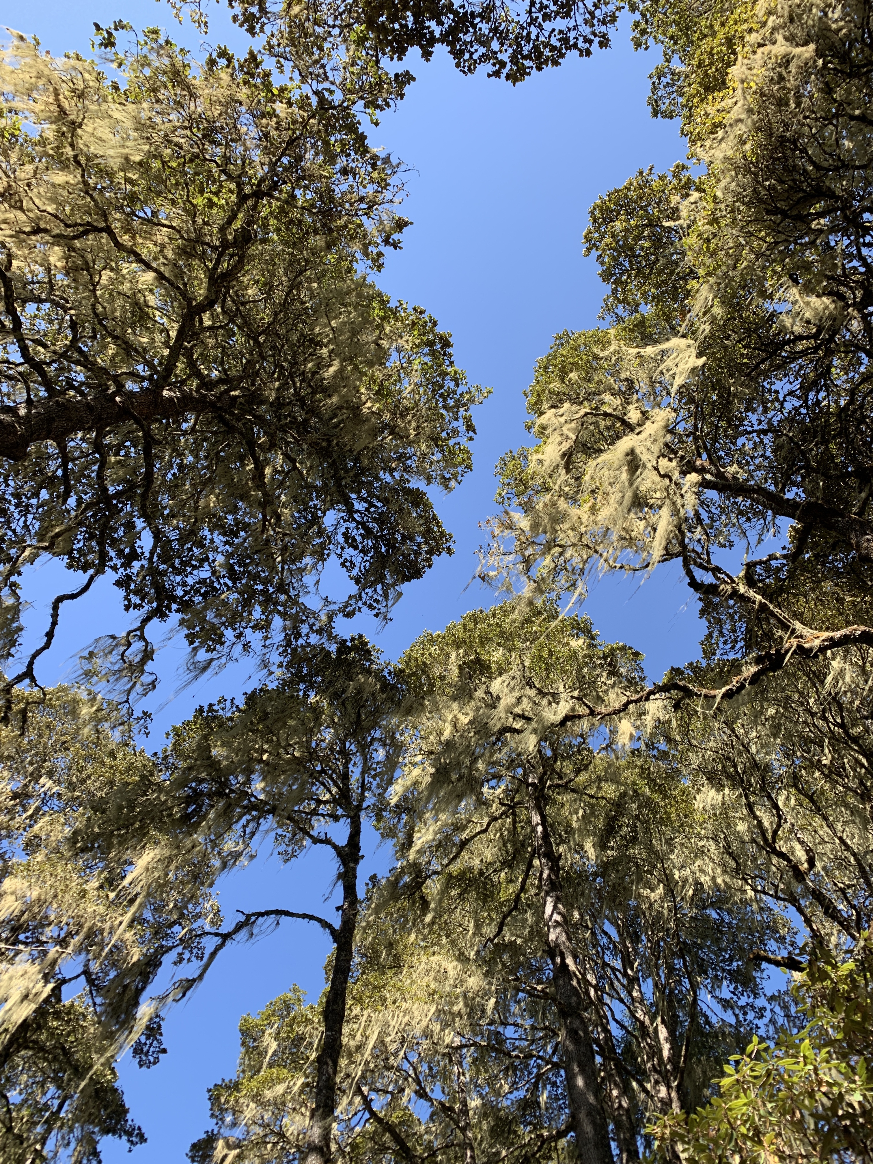After lunch we started another steep ascent, and then it finally broke into gentle rolling path, with even a little downhill . The forest was thick and filled with Spanish moss!