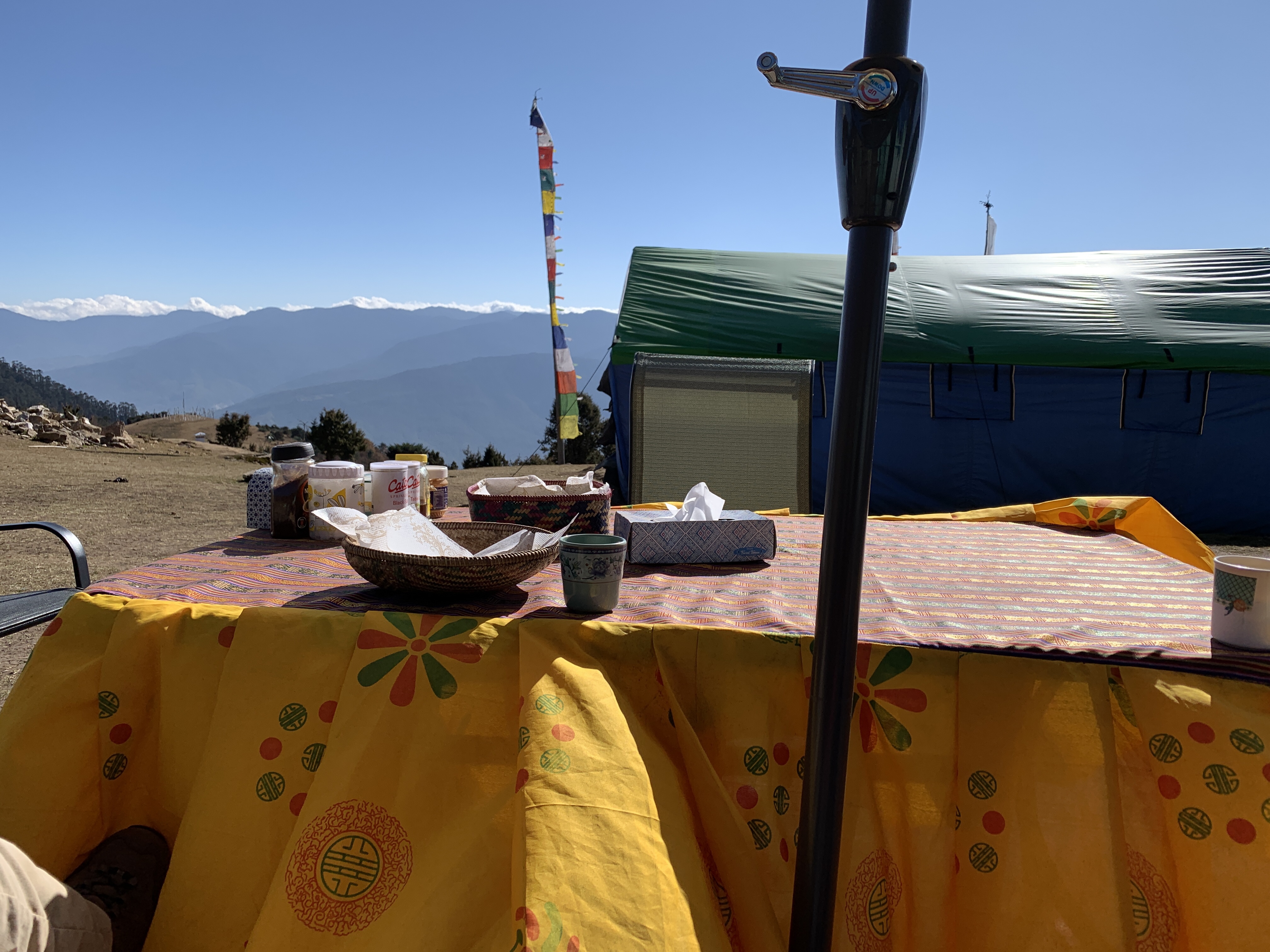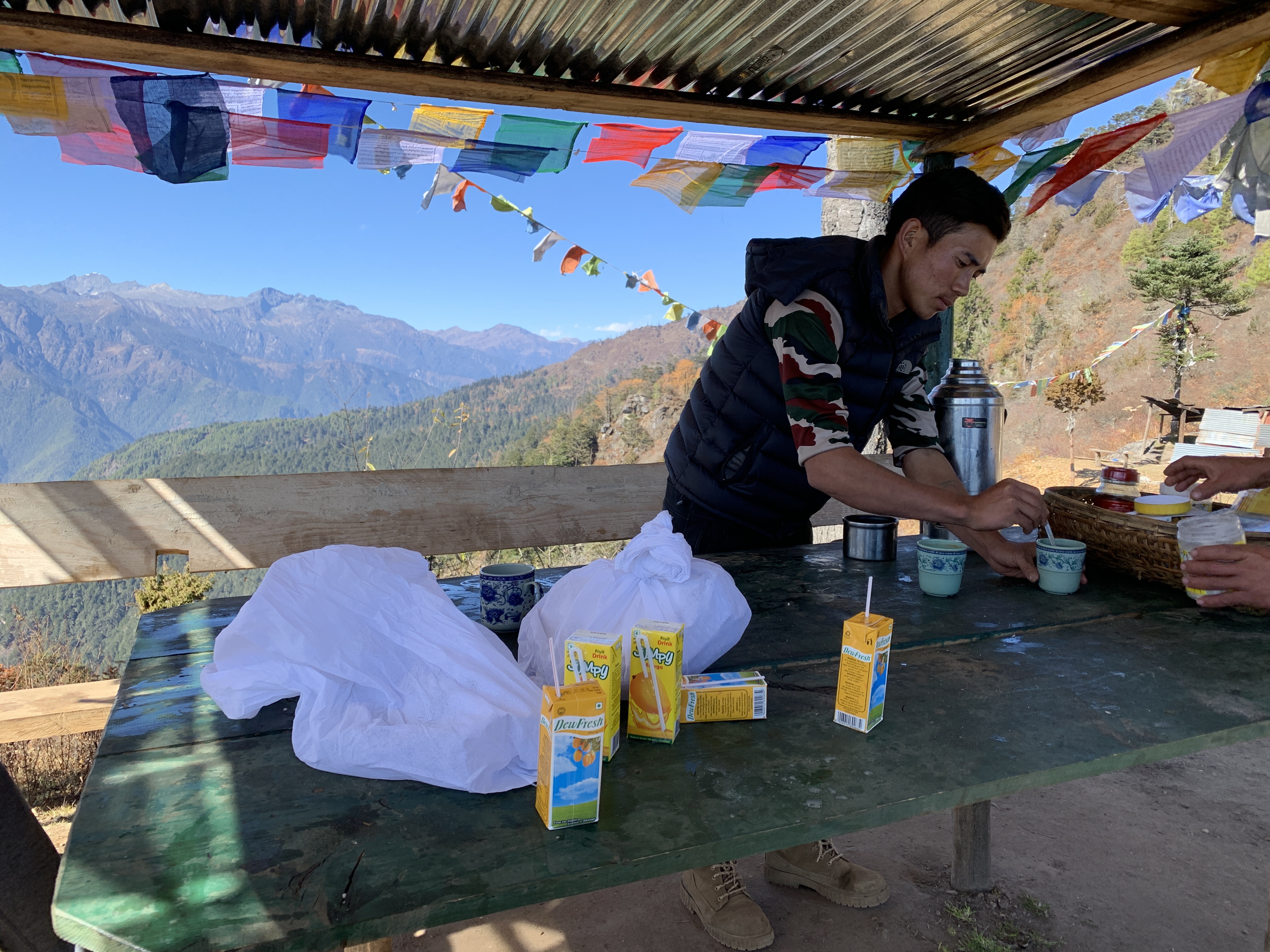 After about 3 hours, we came to our lunch break location. Kenchu had requested the hotel to send a packed lunch, and the guiding company running the camp here and at Bumdra also provided a hot lunch! Needless to say, we did not go hungry!