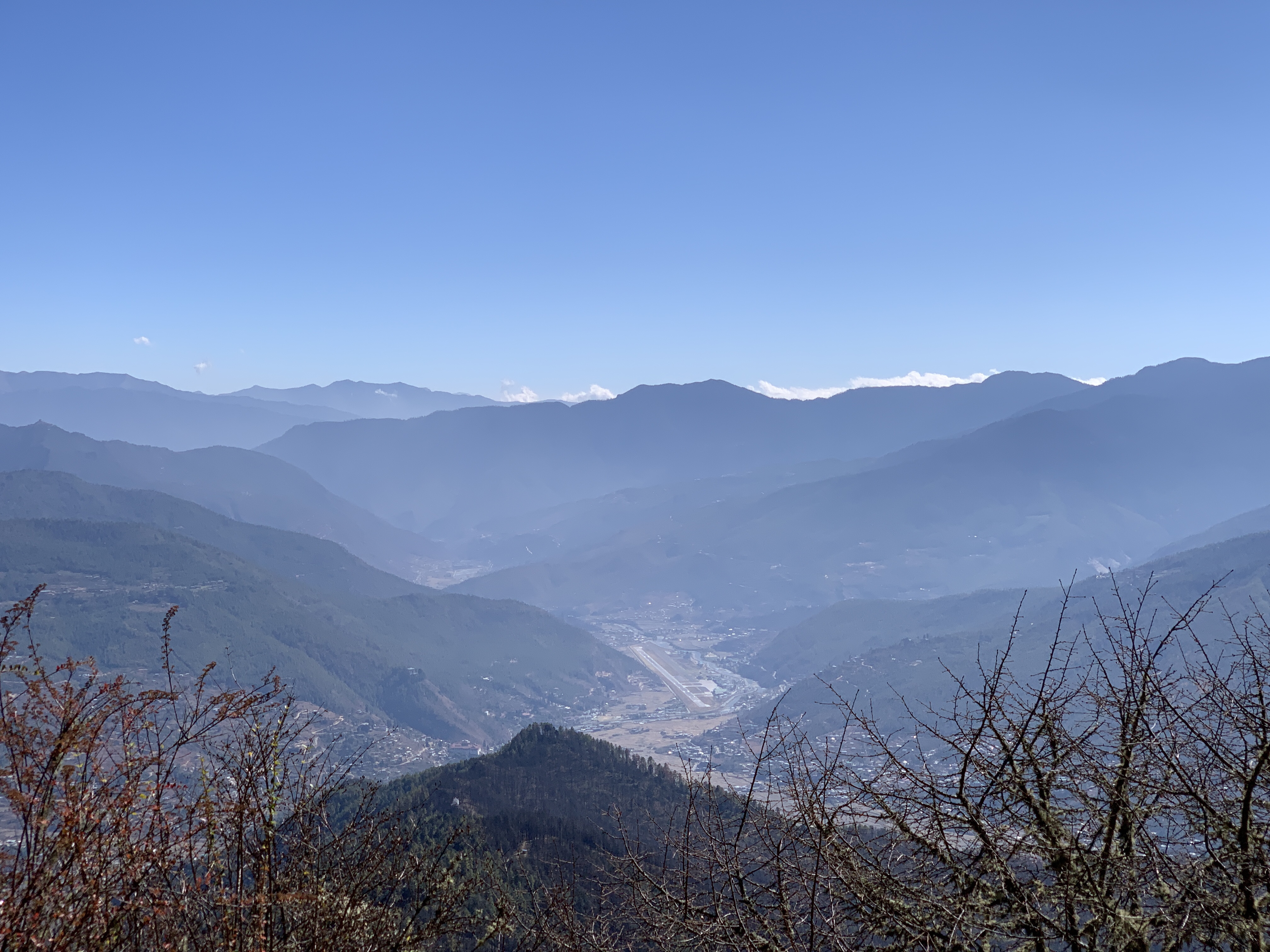 All in all the climb was a mix of gentle rises, steep switchback climbs and the odd forest meadow thrown in for good luck! We got some great shots of Paro Valley, in particular, the airport runway. From our angle you could see just how difficult a manoeuvre landing an aircraft here truly is. I’ve been told that there are only 14 pilots trained to land here! When the Prime Minister of India came for a visit the pilots of the private jet spent 2-3 weeks here learning how to land and take off from this airport!