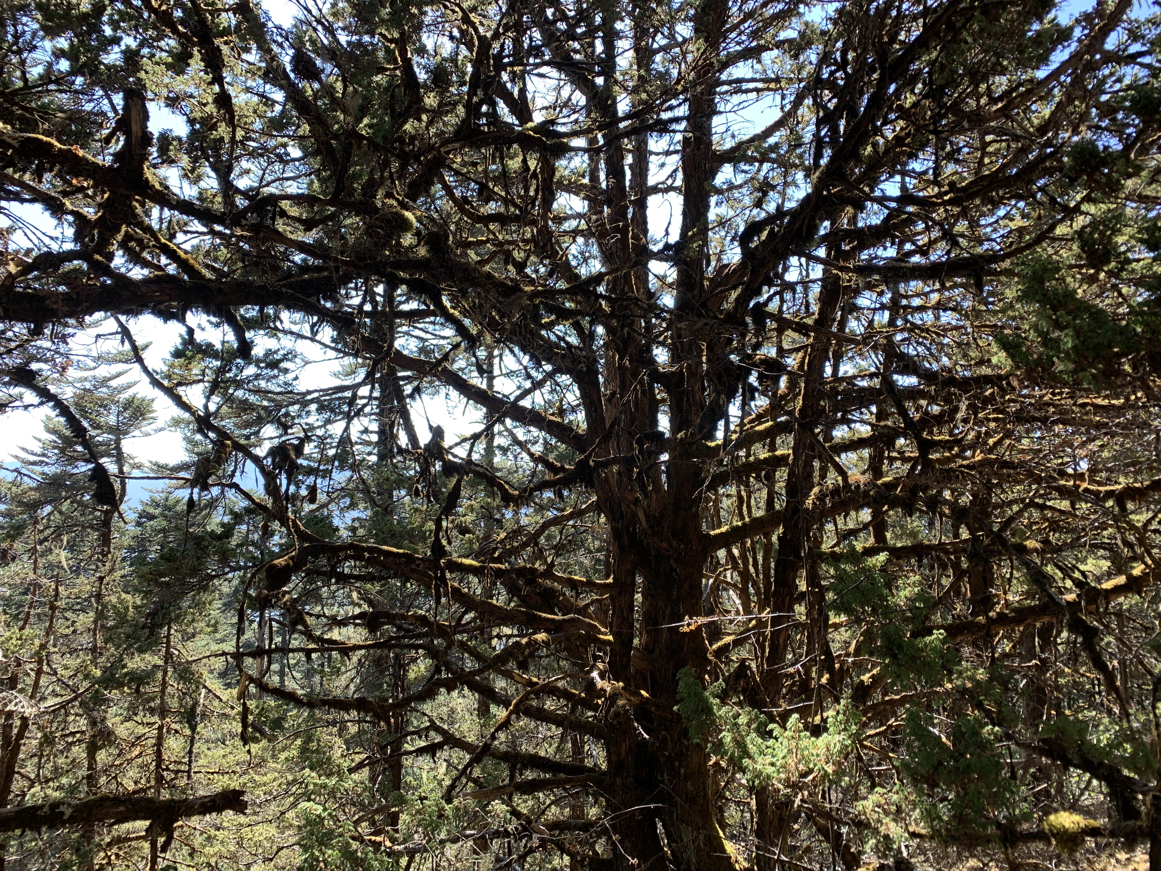 We soon climbed out of the charred forest and on up to a beautiful green forest filled with Rhododendrons and brown oak. The first time I saw this tree, it was little more that a bush and reminding me much of holly. Here, I could see the extraordinary height that this forest canopy had created!