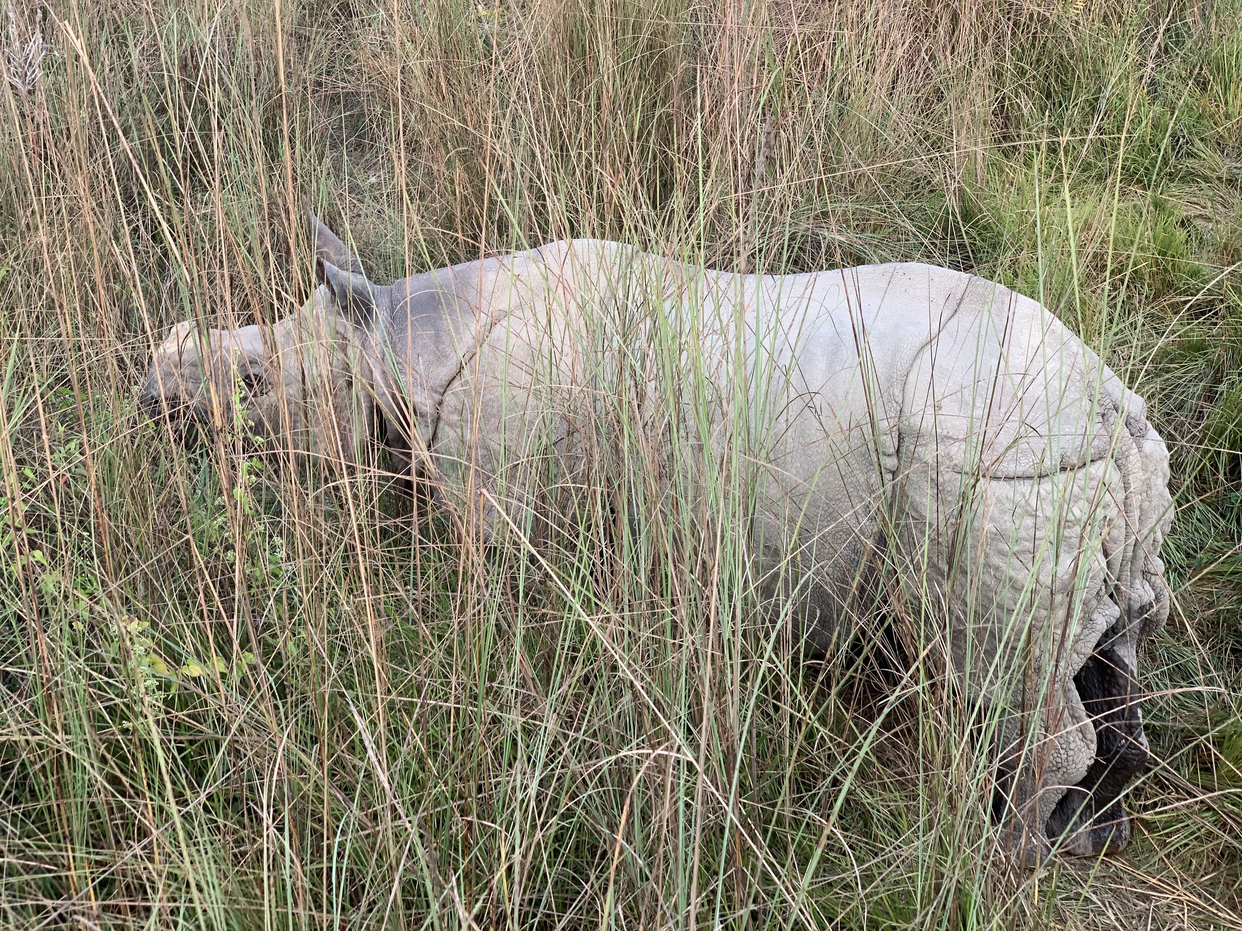 He took a different path heading in the same general direction and soon we saw a one horned Indian Rhinoceros! (Only 3,000 left in the world!) What a beauty she was. Our driver was able to gently steer our elephant so each person had a good look. It was wonderful!