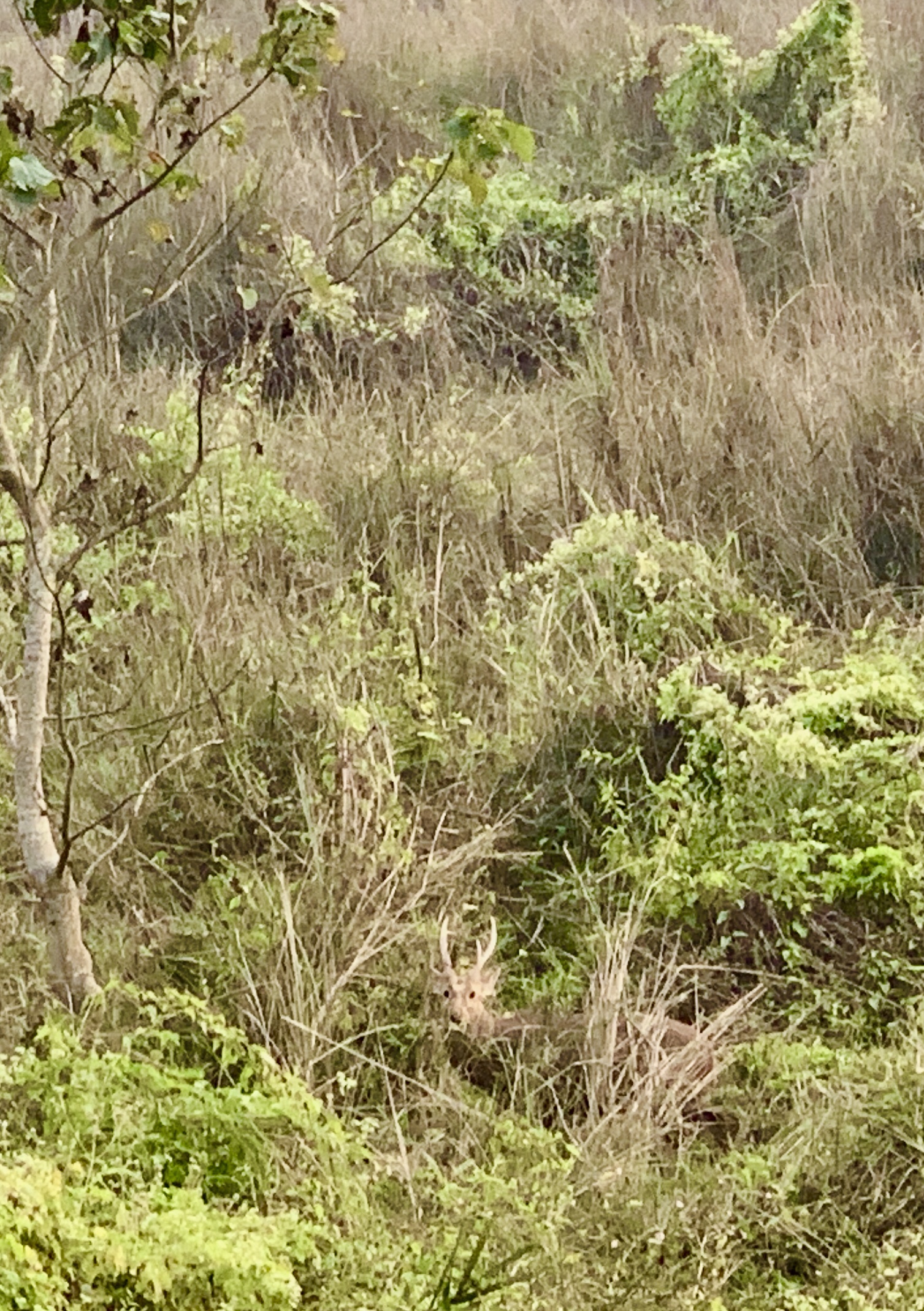 Hog deer in the centre lower third of the photo. Very well disguised, and rightly so. It’s a favourite meal of the tigers!