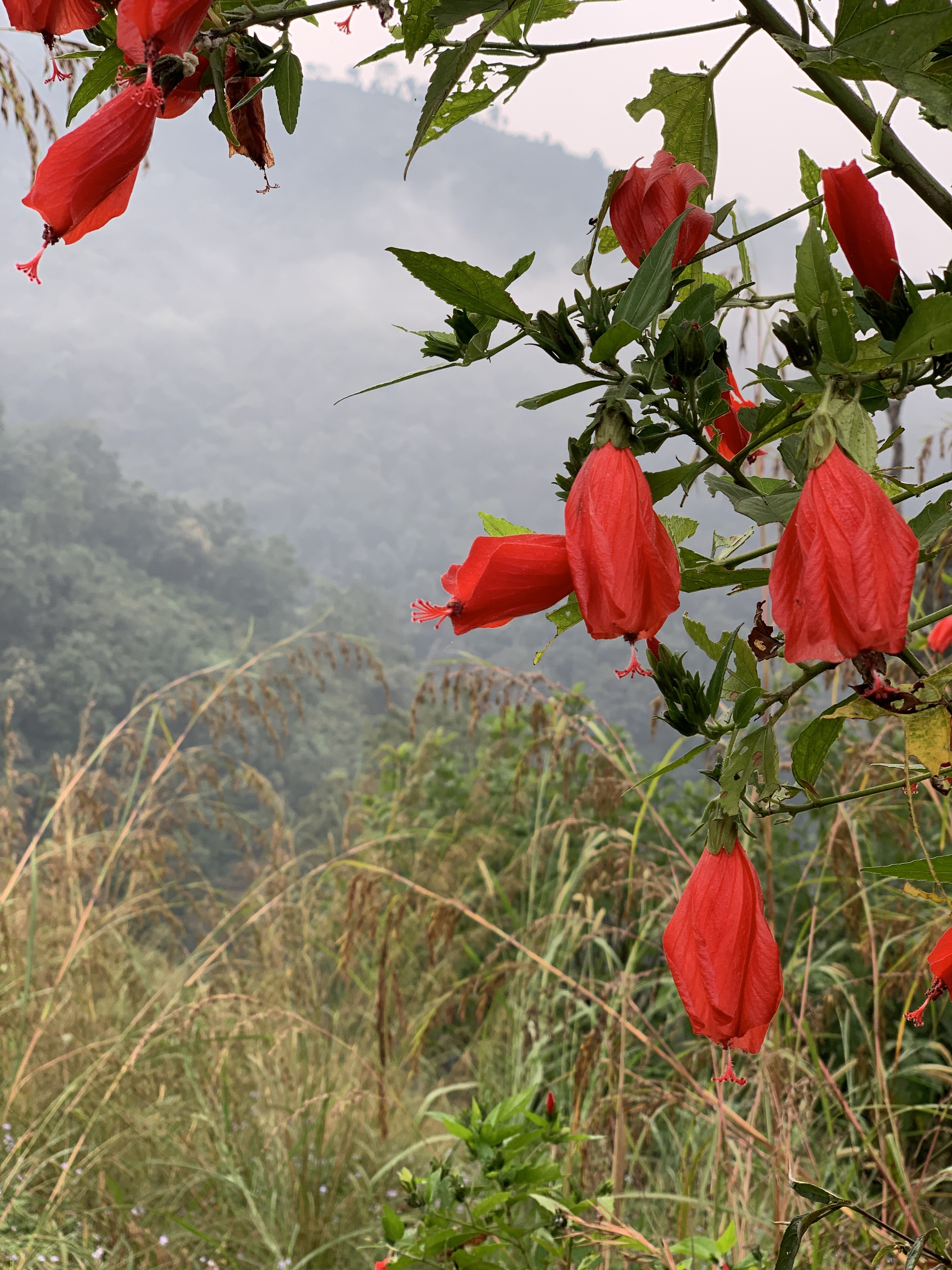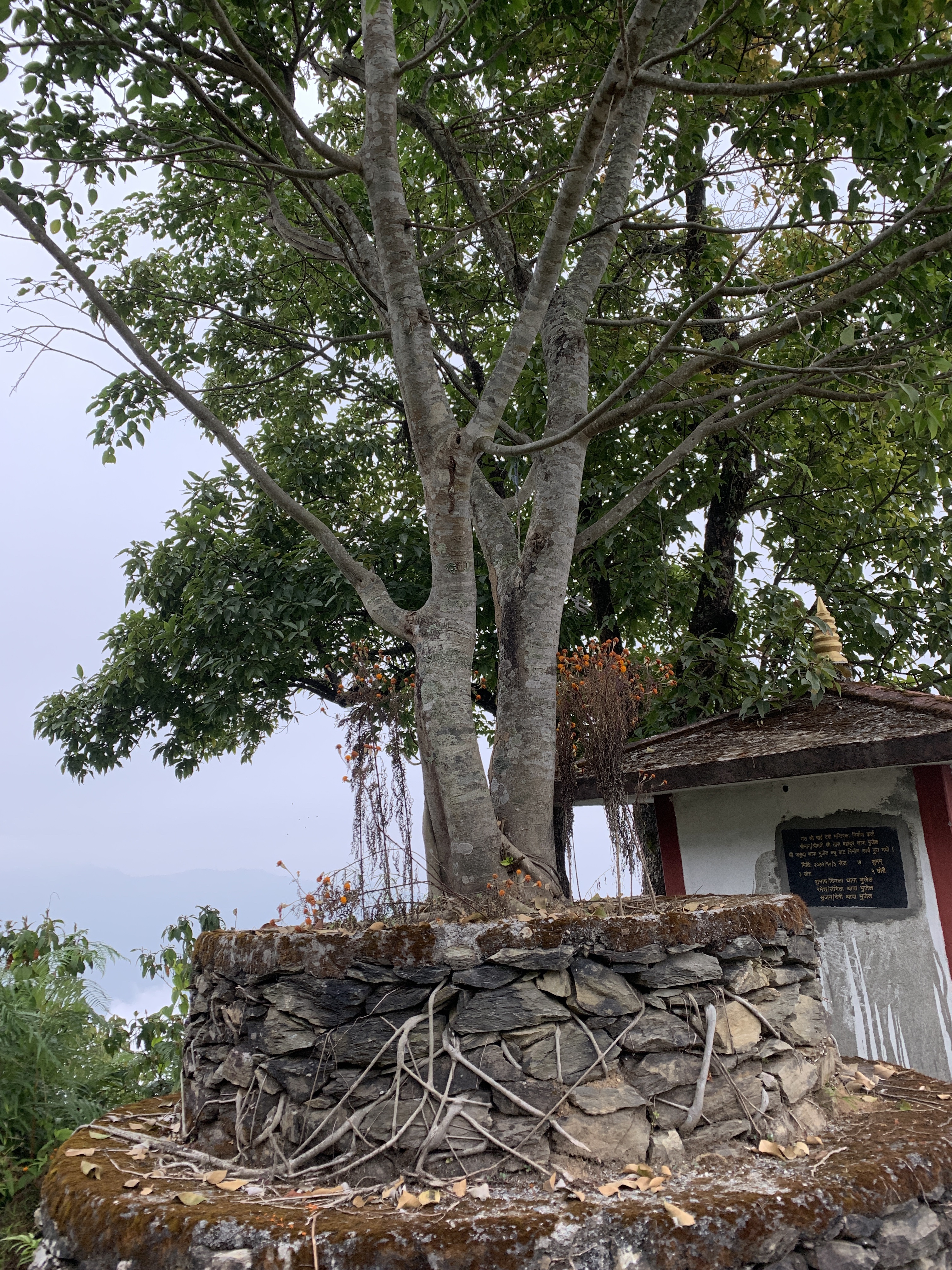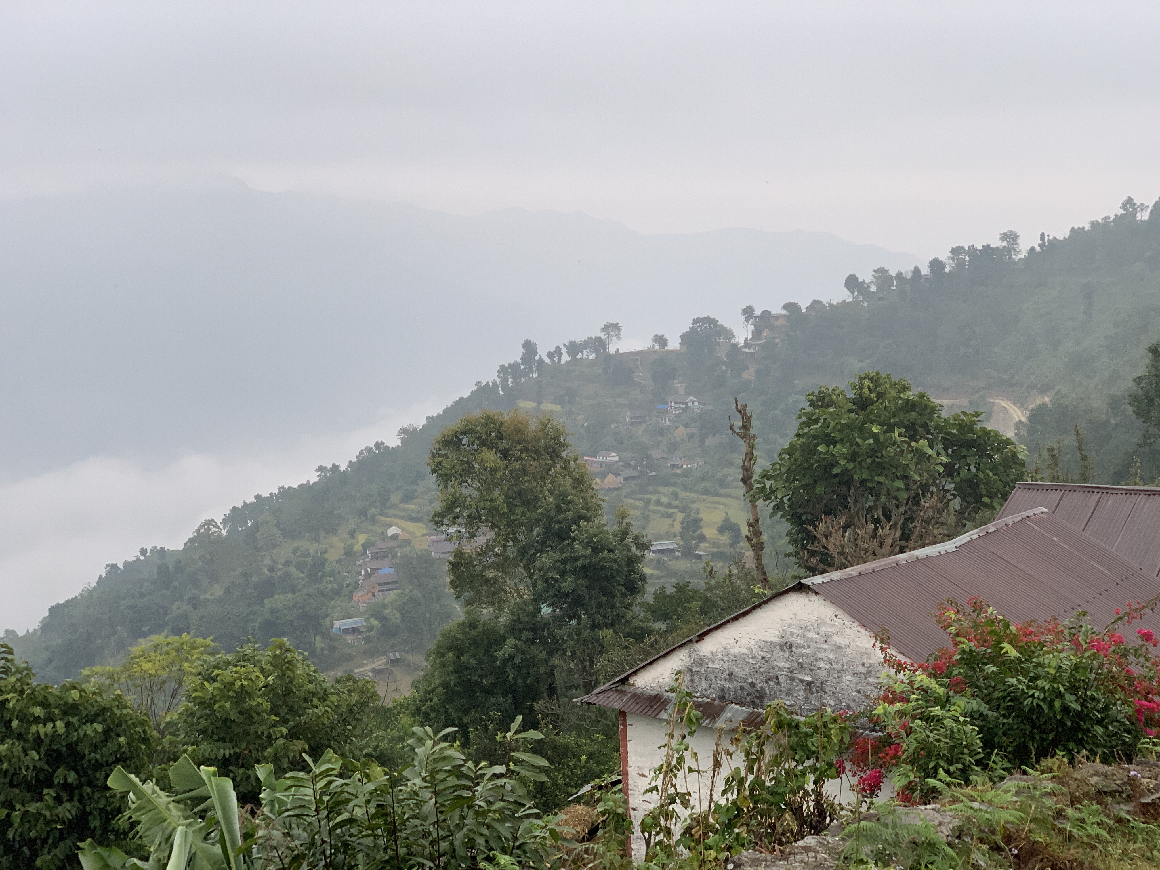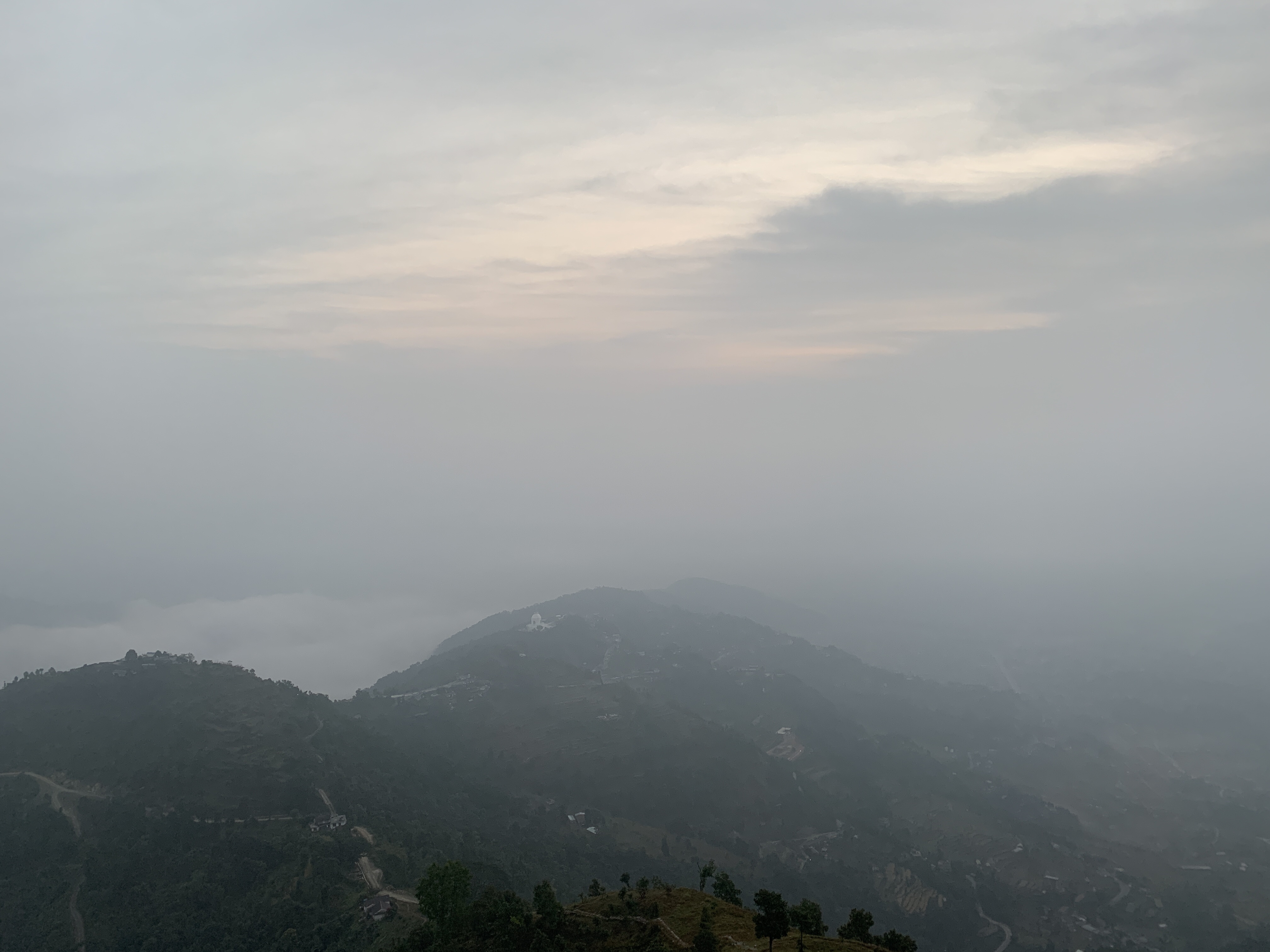 We climbed to the top of an observation tower and tried to see what we could see. The fog had taken over most of the valley and sky, but we could faintly make out the mountains.