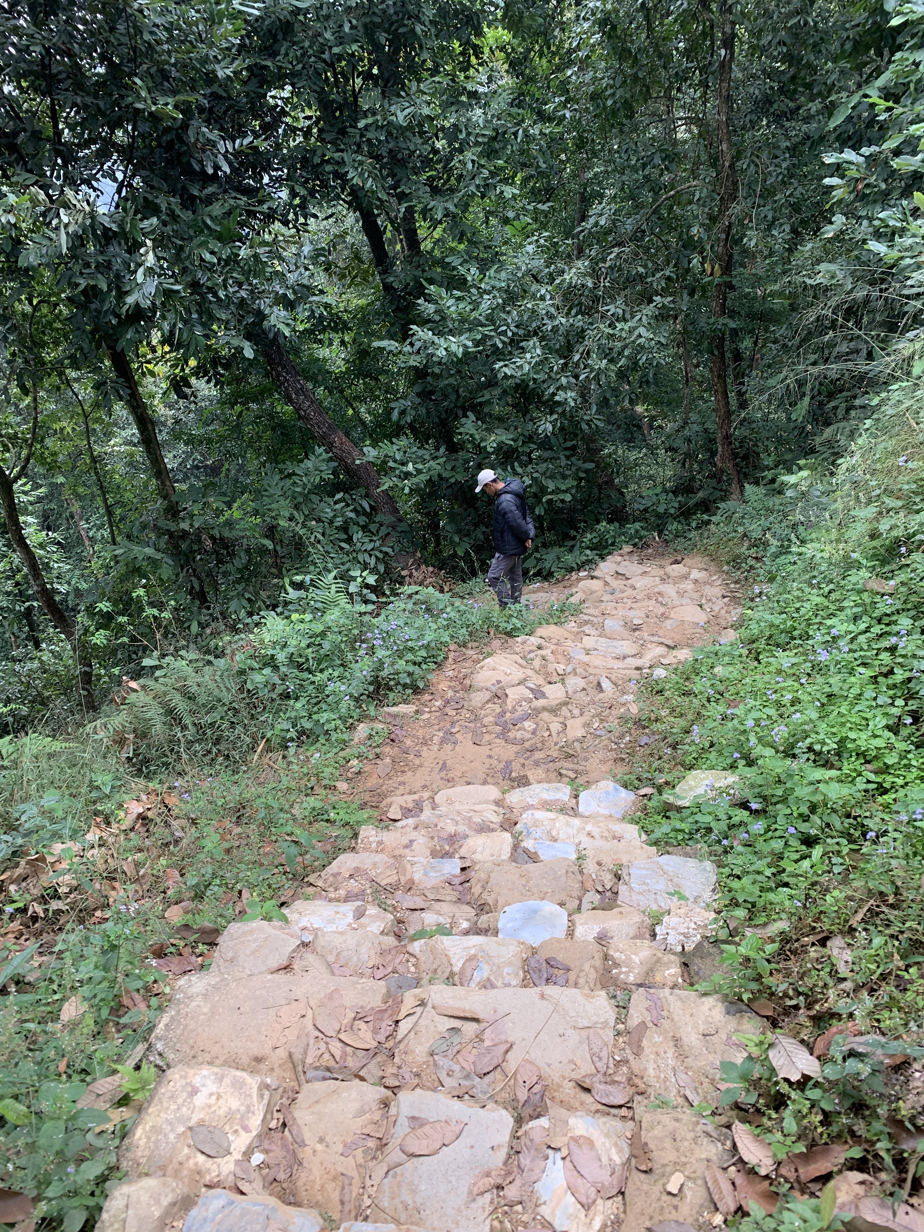 We started hiking down some stone steps made very slippery with the morning dew. Our guide and his wife took good care of us!
