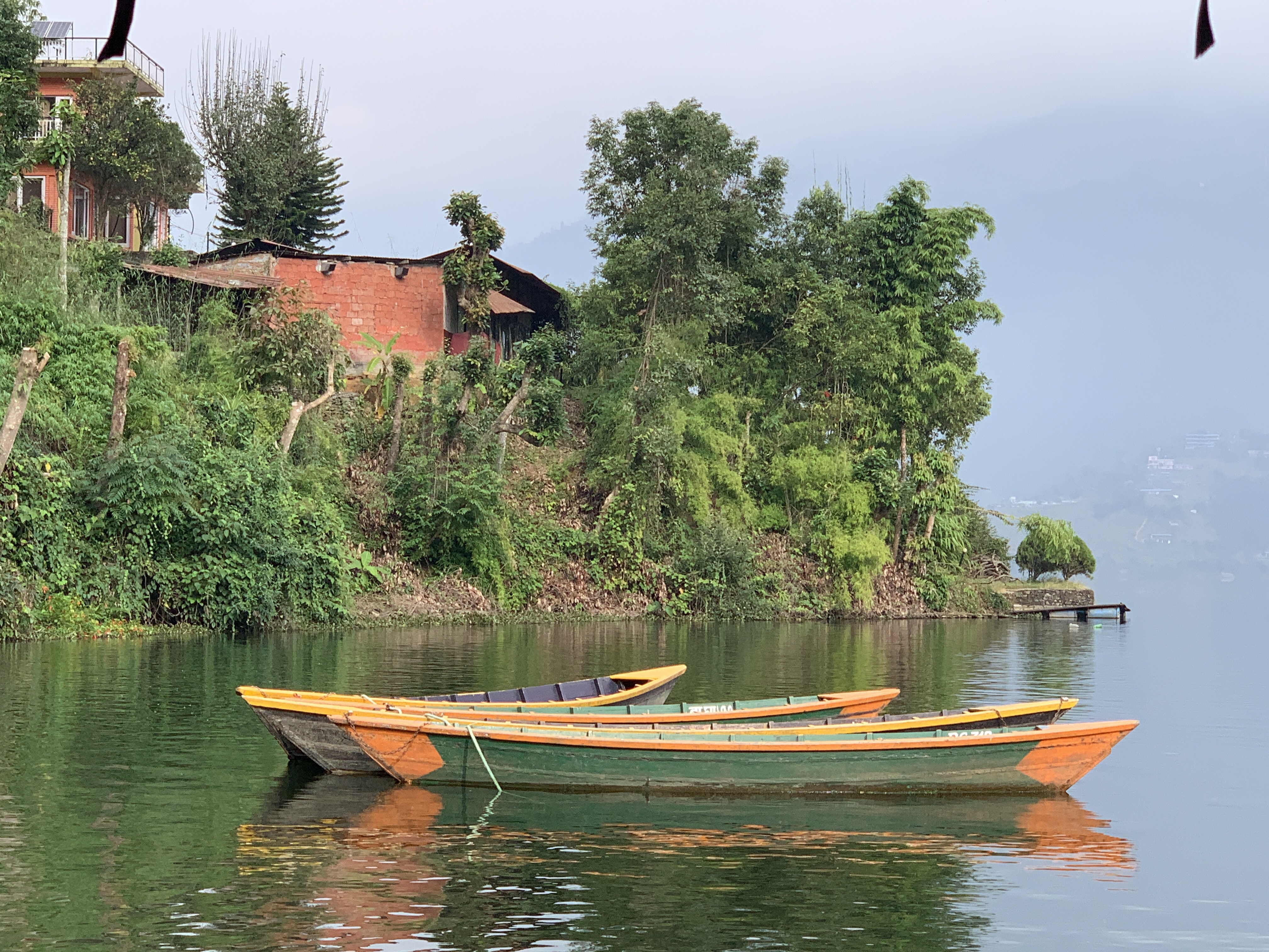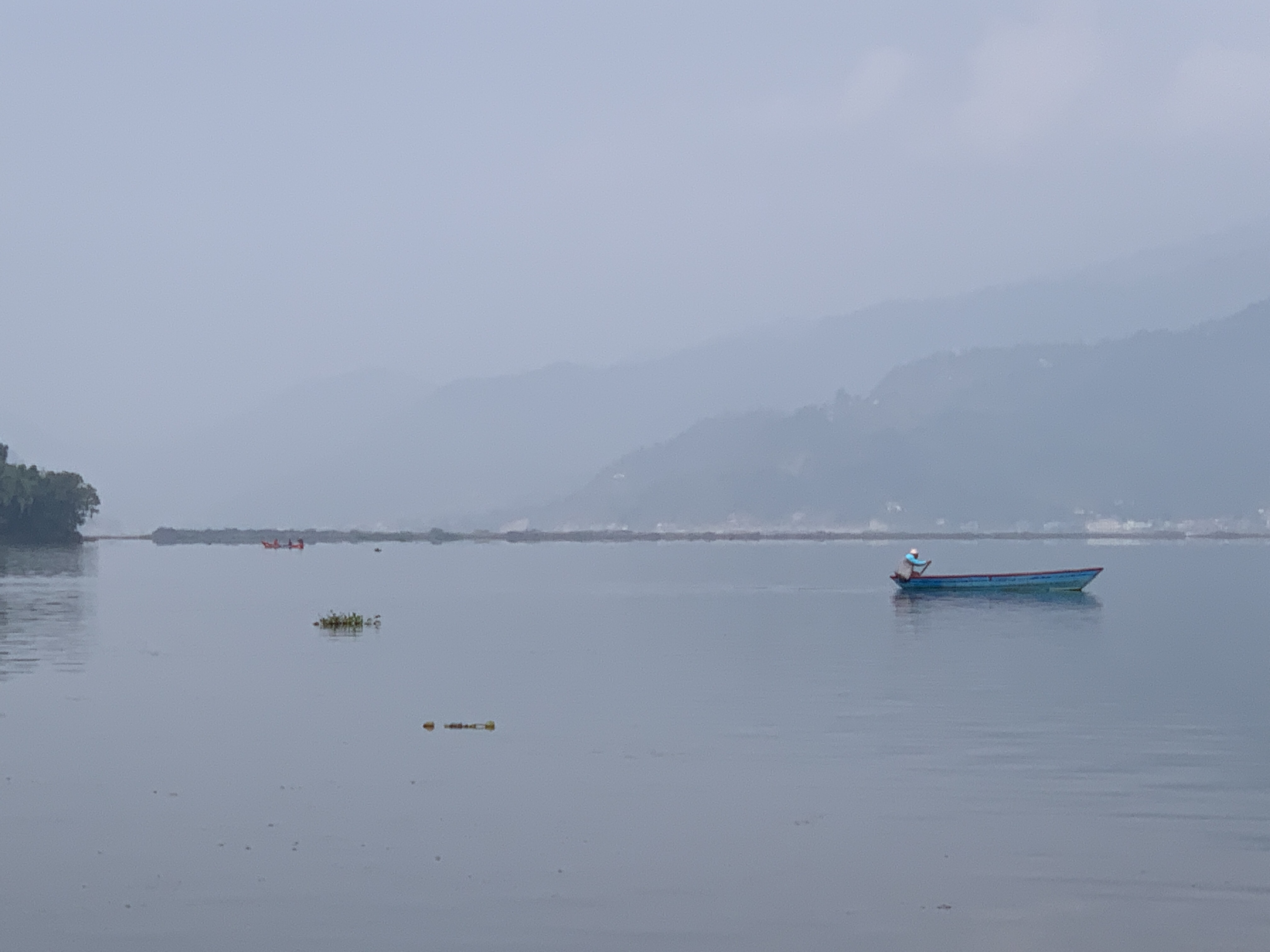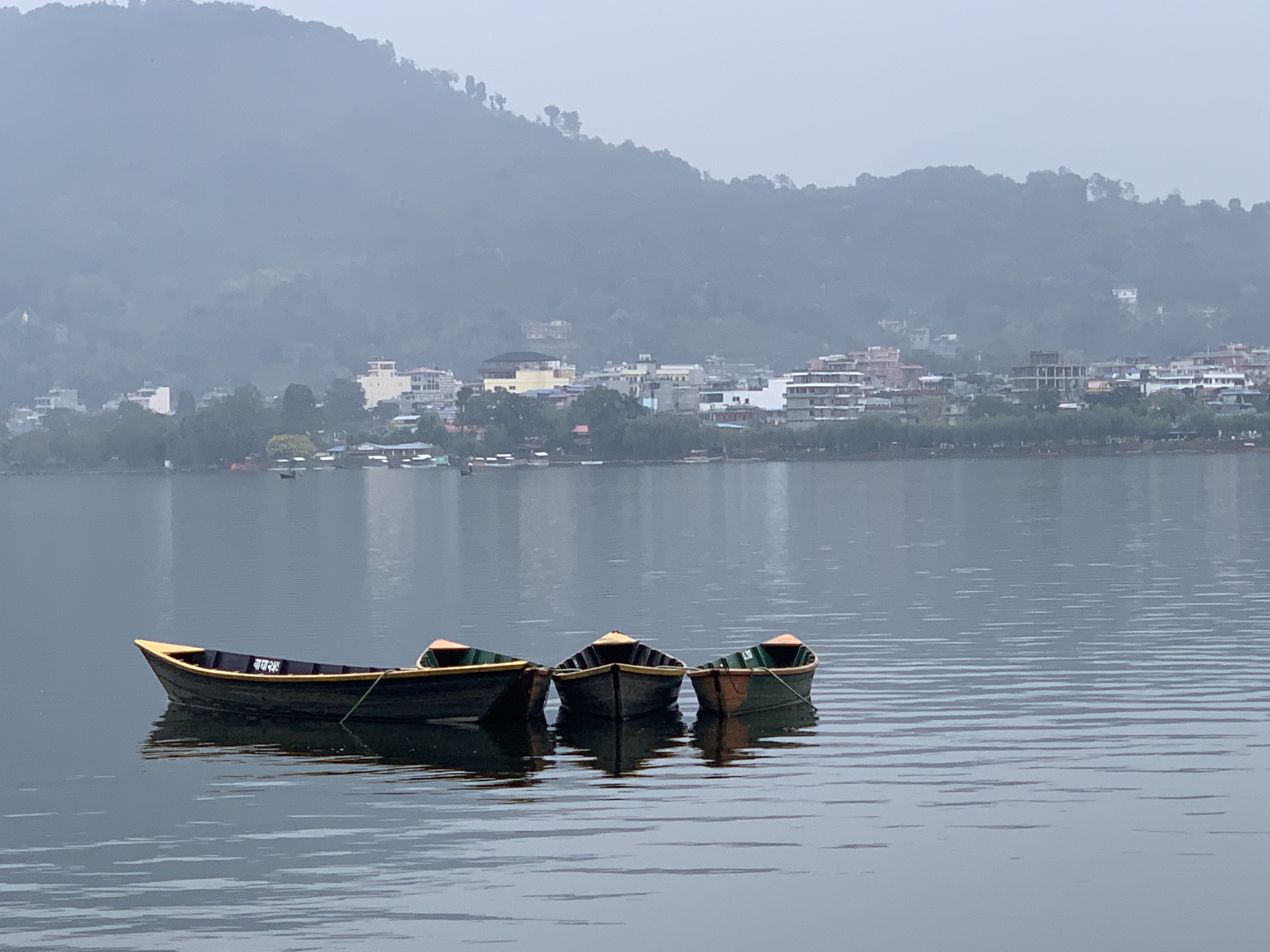 Our trip across the bay to the Lakeside area in Pokhara was serene. A few boats on the water,