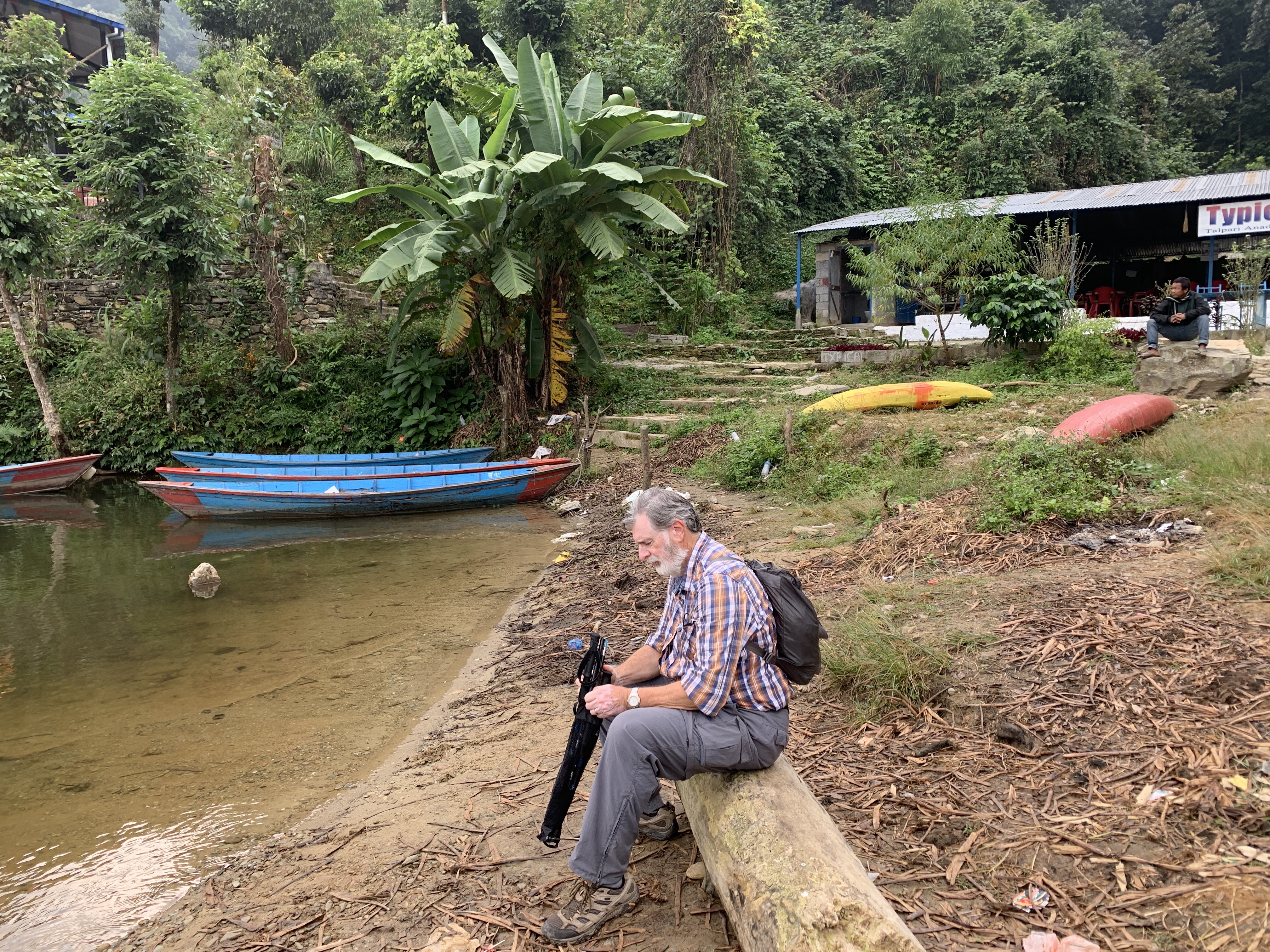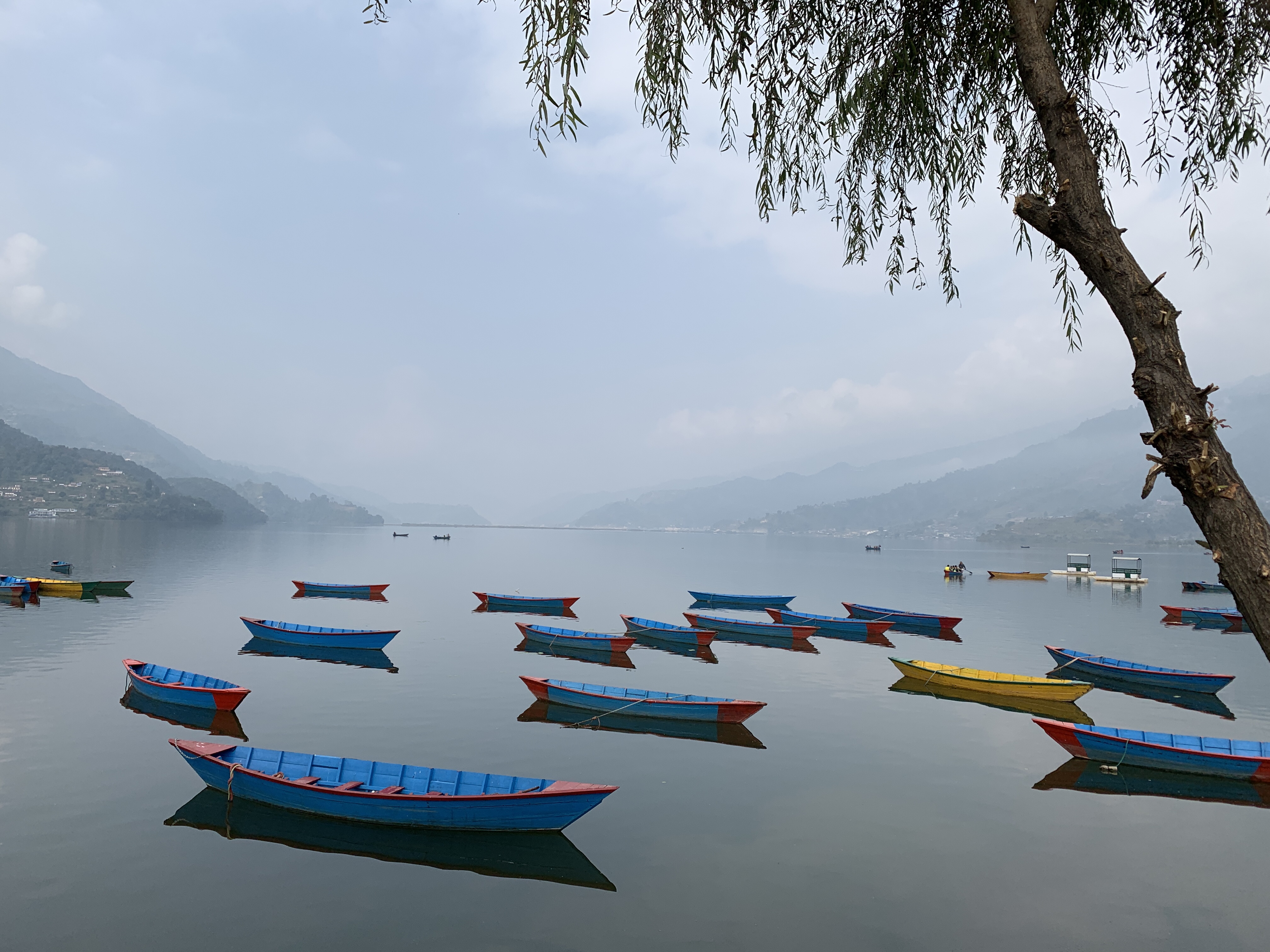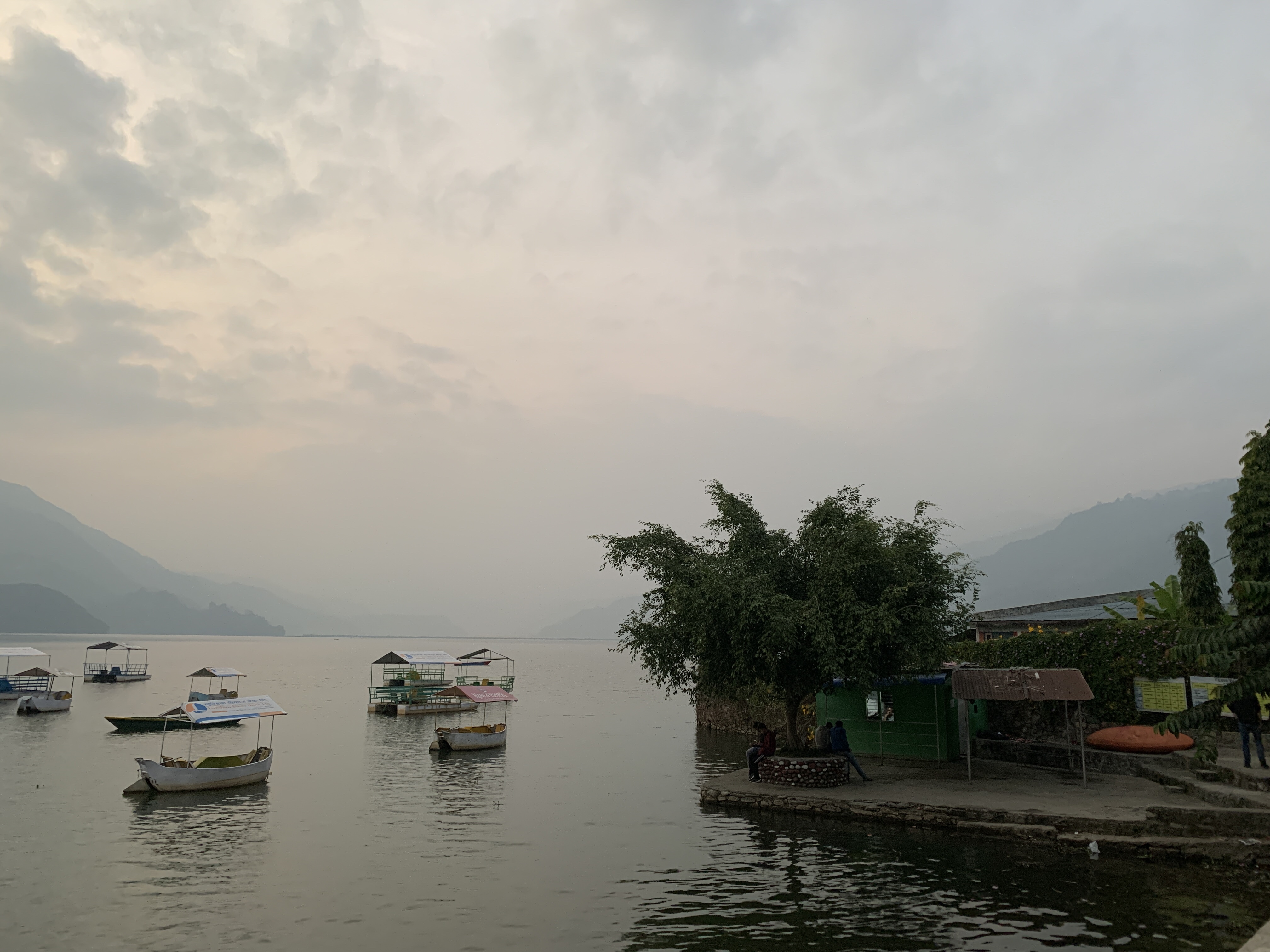 Our trip across the bay to the Lakeside area in Pokhara was serene. A few boats on the water,
