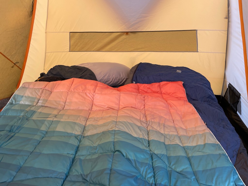 The campsite where we are staying is just for one night, and is a “walk-in” site which means we can’t have the car with us at the site. Lots of gear needed to be hauled a short distance just to get us set up for the night.