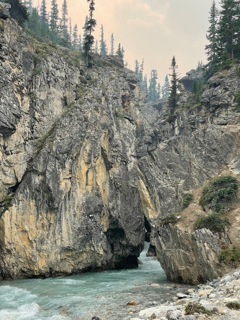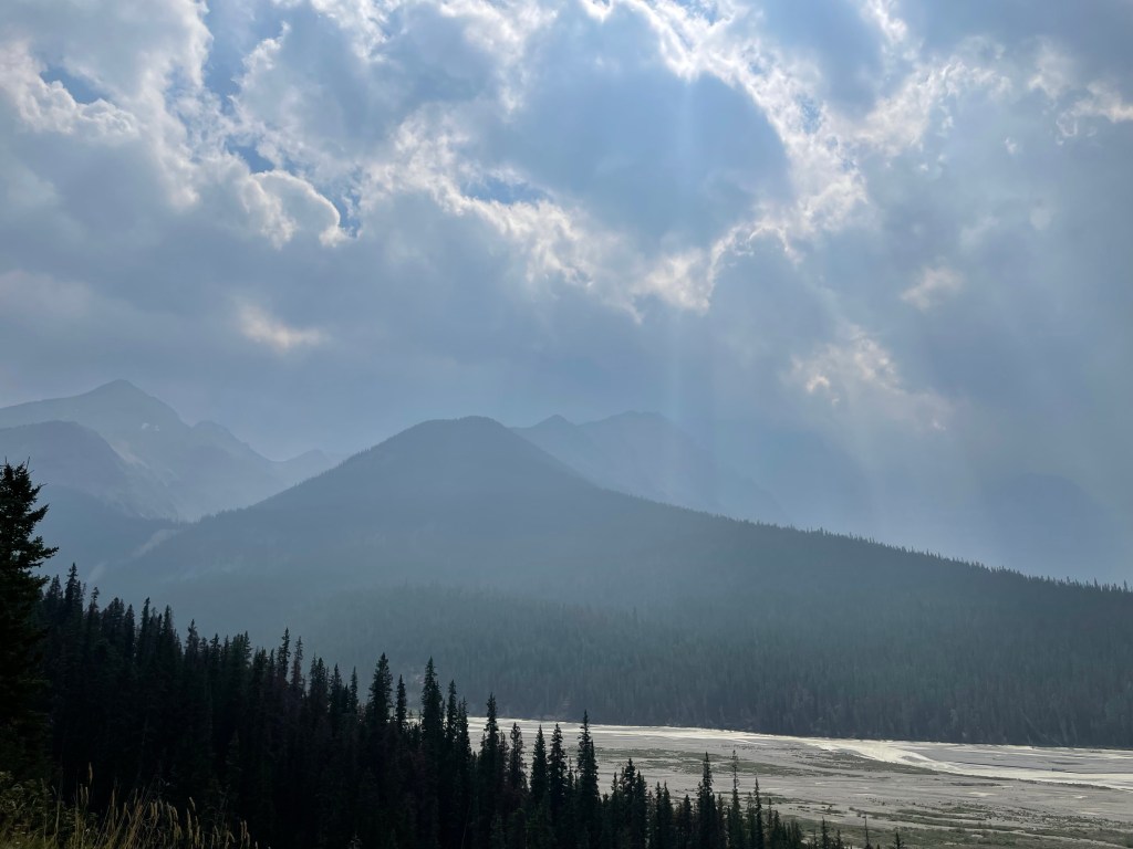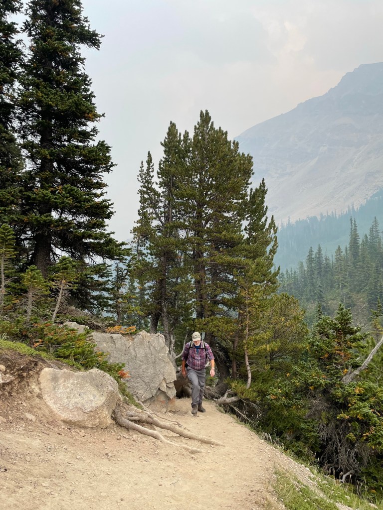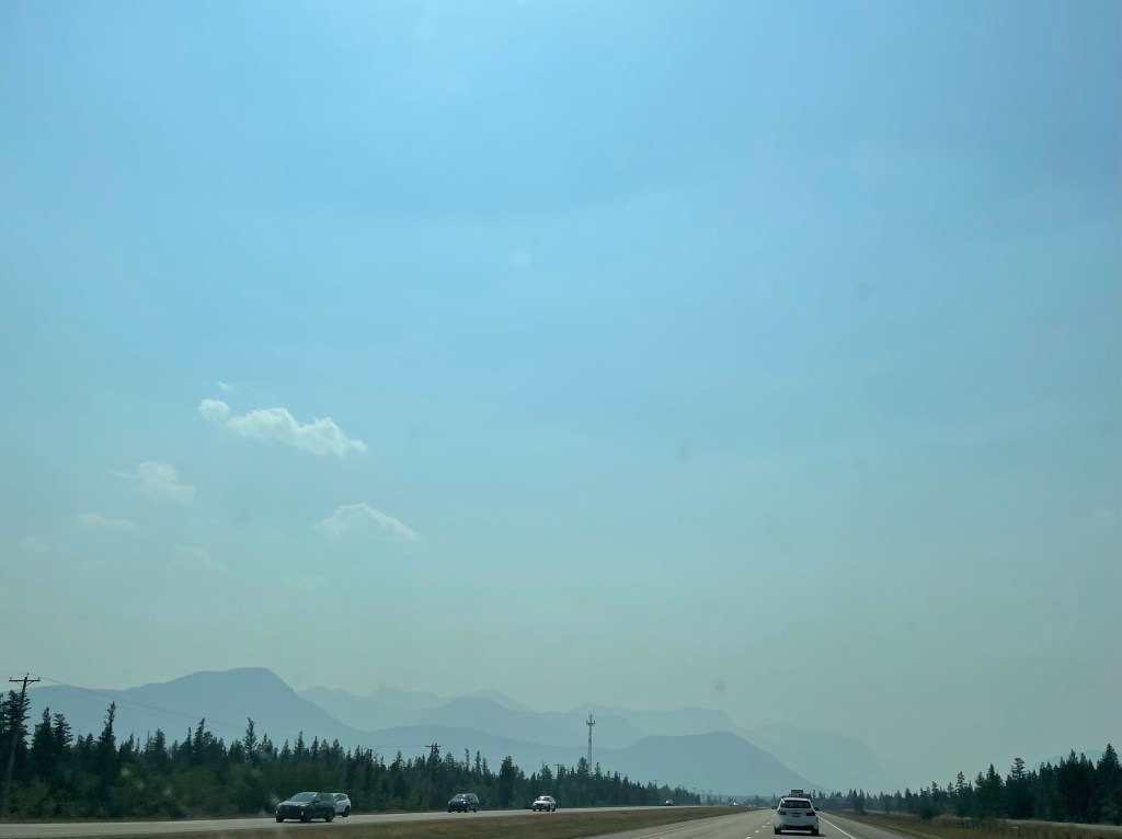 As we headed west into the park the haze from the BC fires was getting thicker. It looked as though a dense fog was descending from the mountains. I’ve driven that drive many times over, but can honestly say I’ve never seen the mountains look more ghost like!