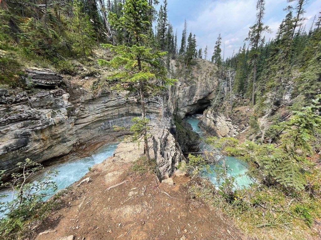 Our first stop was to the Athabasca Visitor’s Centre just inside the Jasper Park boundary. It’s a beautiful centre, but filled with tourists on the main level trying to get bus tickets for the Athabasca glacier viewpoints. We scooted to the lower level to the Park’s Visitor guide and got some excellent advice on hikes.