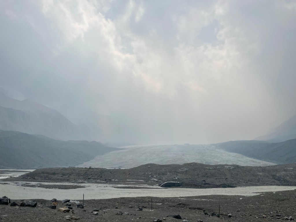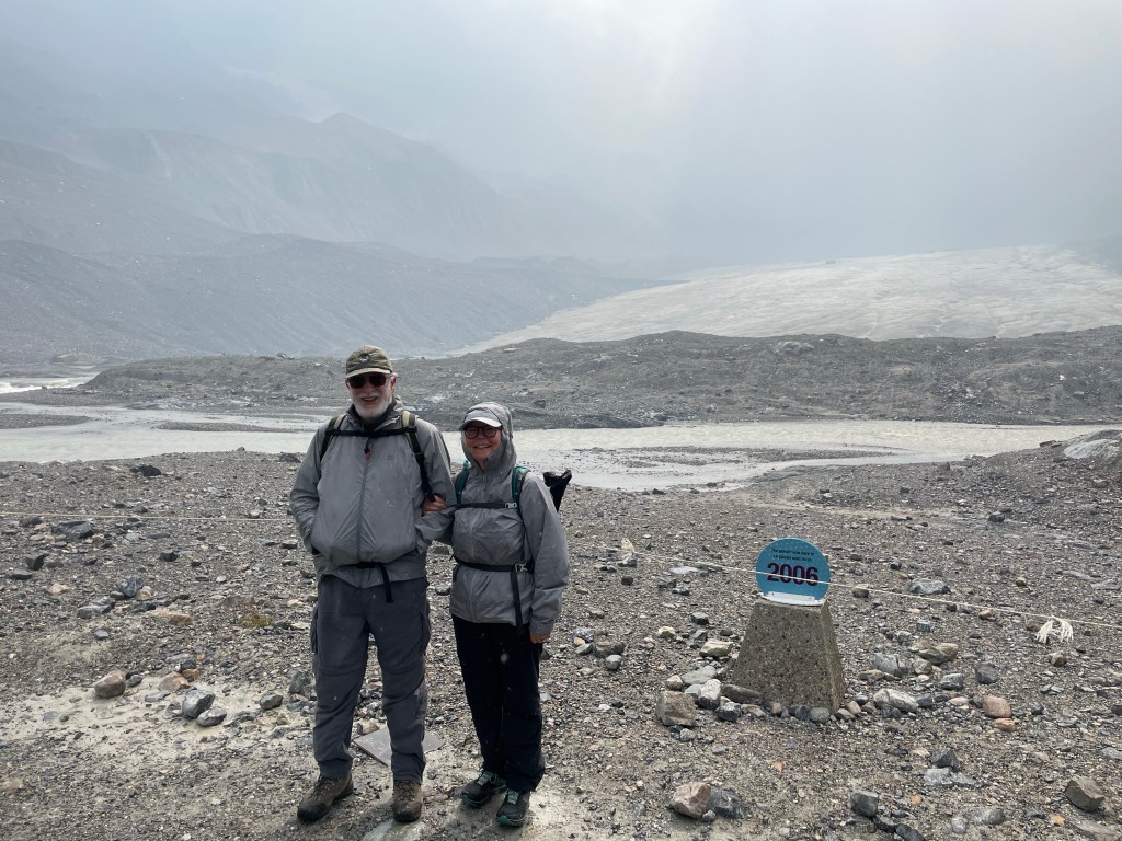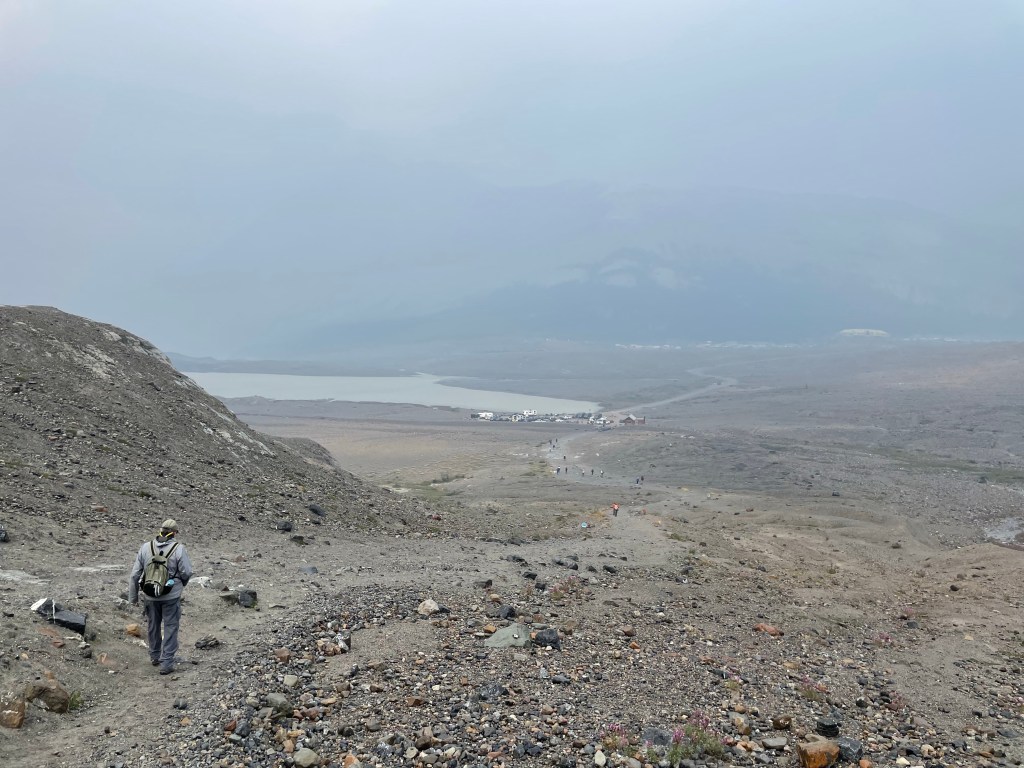 Because of the spitting rain, we opted to first stop at the Athabasca Glacier and hike to the base ( or a close as they would let us go). The winds coming off the glacier were bitter cold, and the rain blew straight into our faces as we hiked up the Morraine.