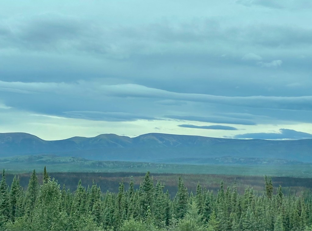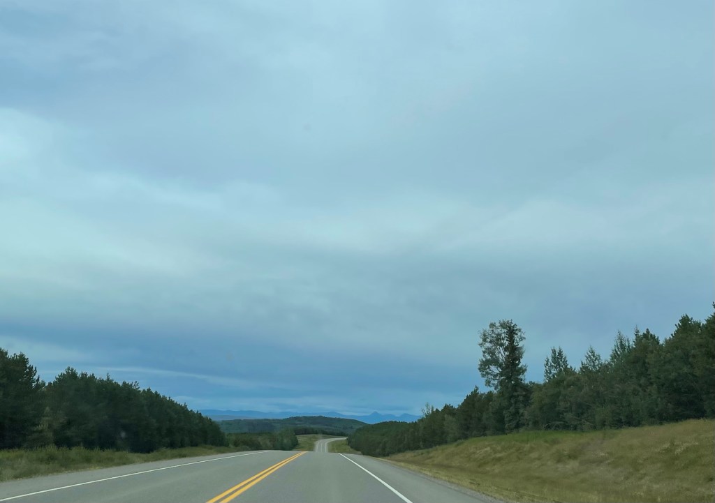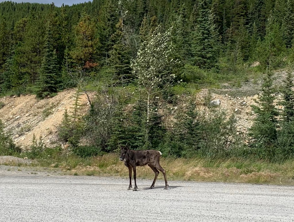 Our drive started with rolling hills as we headed northwest. Soon we spotted mountains in the far distance. The prairies gave way to Boreal Forest and along the roadside we could see evidence of fires both in the recent and distant past. Certainly a constant reminder of how fragile life was here.