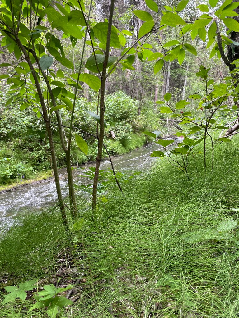 We paused along the way to take some photos, but I must say the mosquitos were bad, and we didn’t stop very long! We did see a campsite in the woods there, but we both agreed, this wouldn’t have been the place for us!