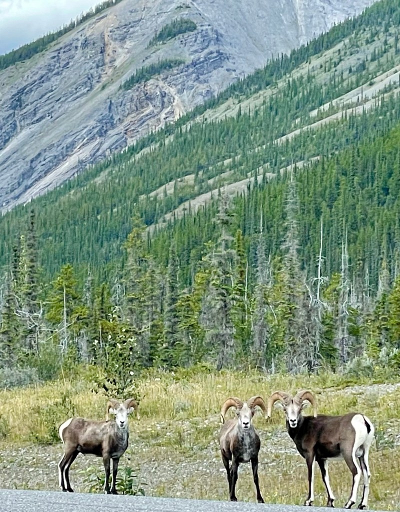 We luxuriated in the pool for about 30-45 minutes, soaking up the warmth and healing powers of this mineral rich bath. But our lake view campsite called to us, and we were off back down the highway to our home for the night. Along the way home we saw three more long horned sheep! Unfortunately no lonely Bison!