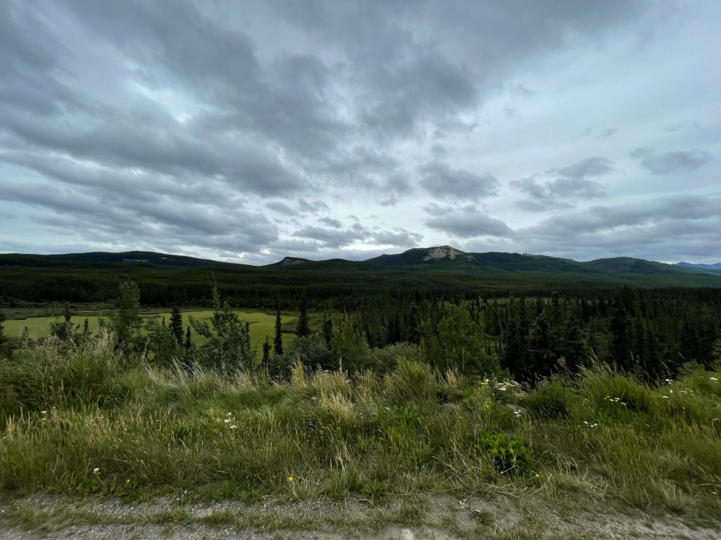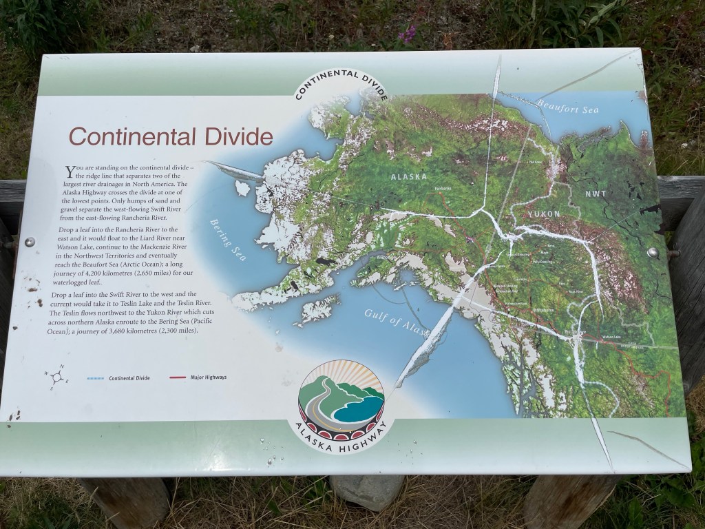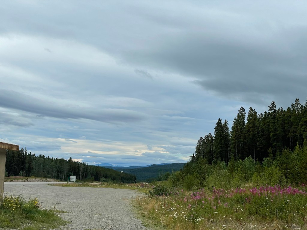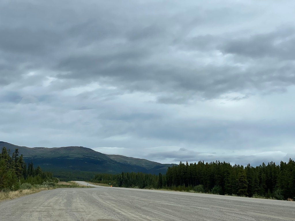 We decided to simply brake camp without bothering with breakfast. There was a lodge a couple of kms up the road called the Northern Rockie Lodge and we thought we would get a coffee and breakfast sandwich to go. Once we had our coffee in hand and food in our belly we were off on our next adventure. Today would have us drive north about 650-700 km to Whitehorse.