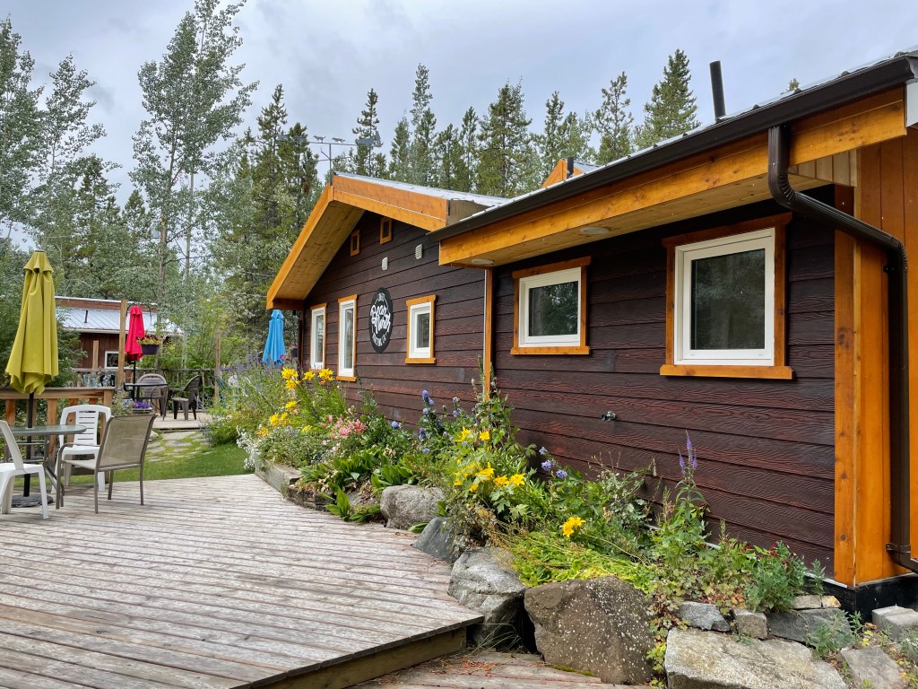 From there we tried to get a fishing license, but were a little early so we decided to head over to our RV rental place and take a look at the size of vehicle (especially the frig) to ensure our provisioning would fit! After that we followed the advice at the Tourism office and visited a little café out by the Yukon Wilderness Park. The Bean North was a cute little spot nestled in the woods and Dan and I had a quick panini there before heading over for our hike.