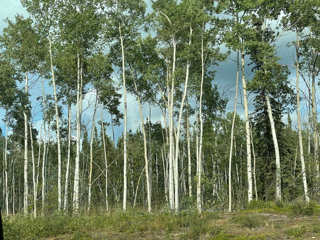 Our target was Dawson City for tonight. A 500-600 km journey which took us about 6-7 hours. The scenery was spectacular along the way and we made note of some lovely parks we would like to visit on the way home! The trees are definitely getting shorter as we go, with large stands of Aspen trees seen along the way.
