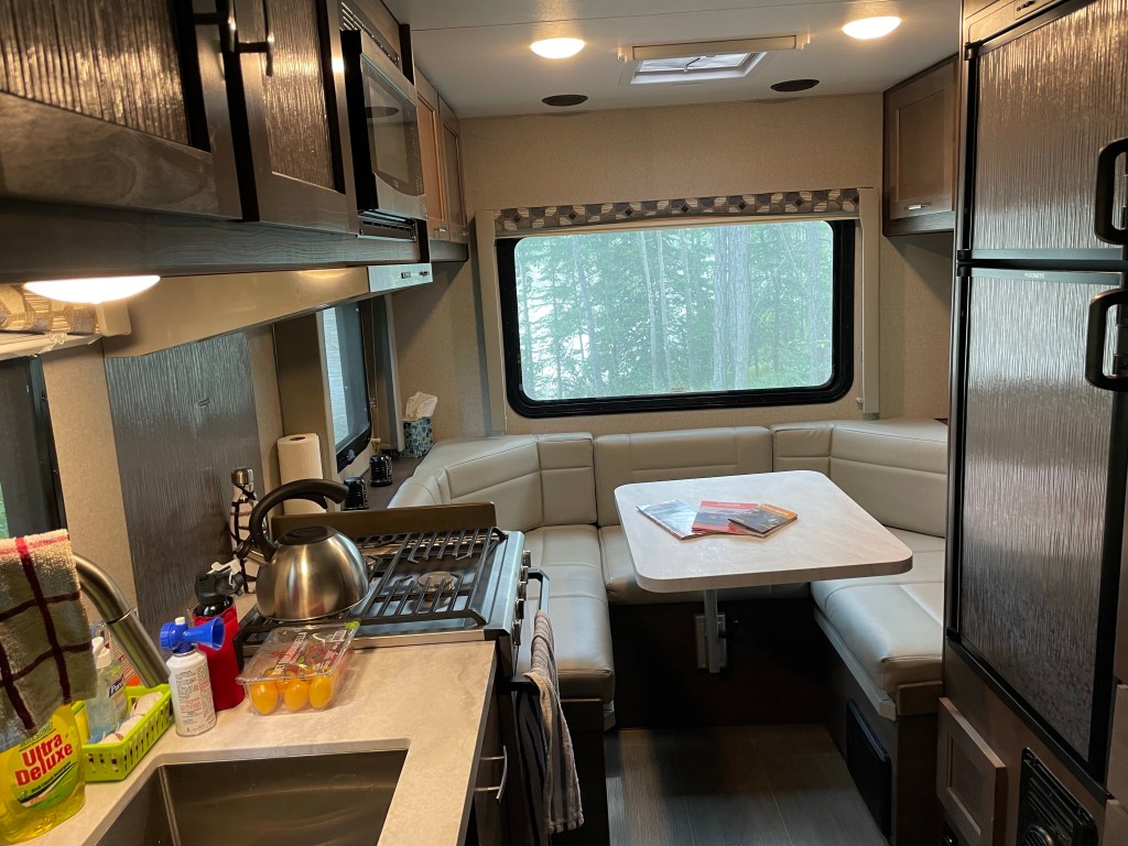 After saying our goodbyes to Joel, we headed to Fraserway to pickup our RV. We took about 30 minutes to do the paperwork, another 30-45 minutes to inspect the RV, get our orientation on all the operations, and then we pulled our car up and began the transfer of our stuff from the car… not everything, but the essentials we would need to see us through.