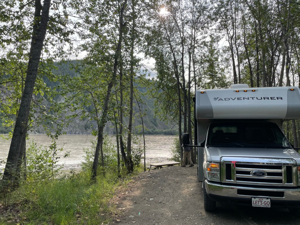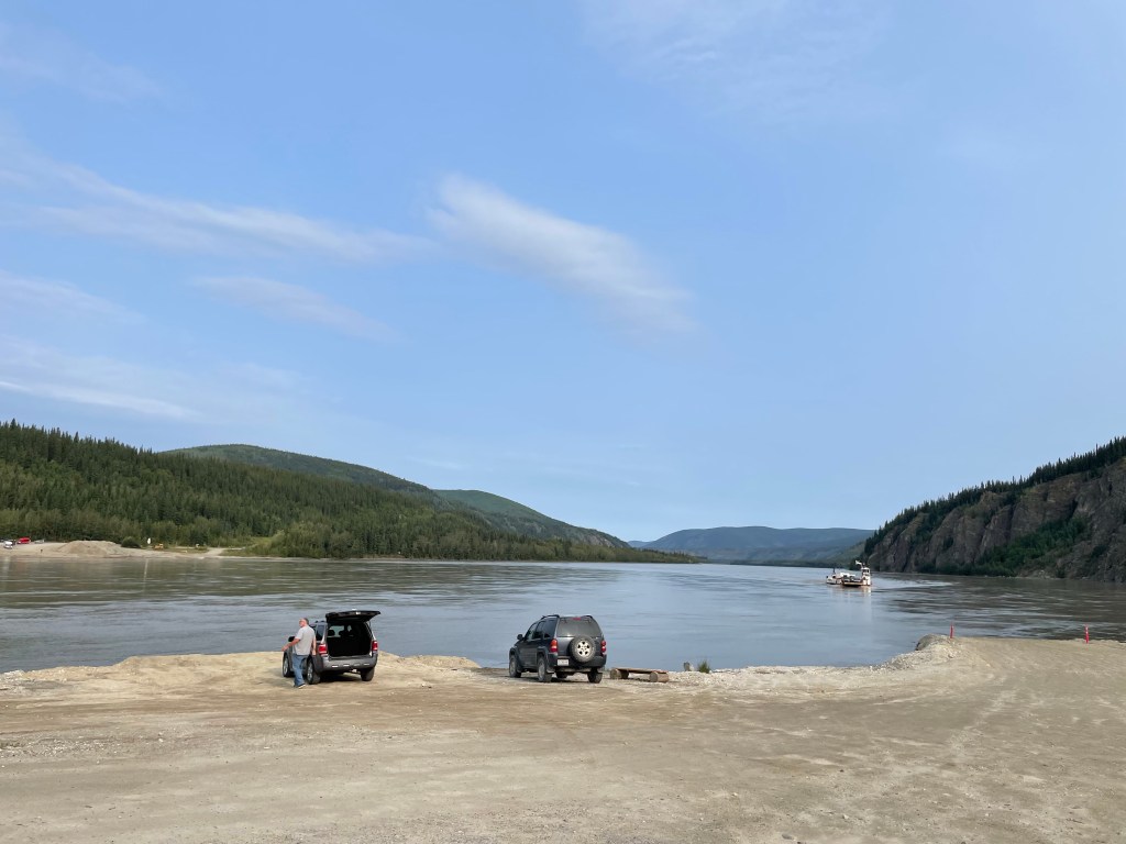 We woke up relatively early, prepared a quick breakfast then set out to see if we could get to the Yukon River Campground. When we got to the ferry there was no warning of full campsite, so with that in mind we boarded the little ferry ( free and runs 24/7 5 months of the year!) and headed tp the other side of the river to the campground.