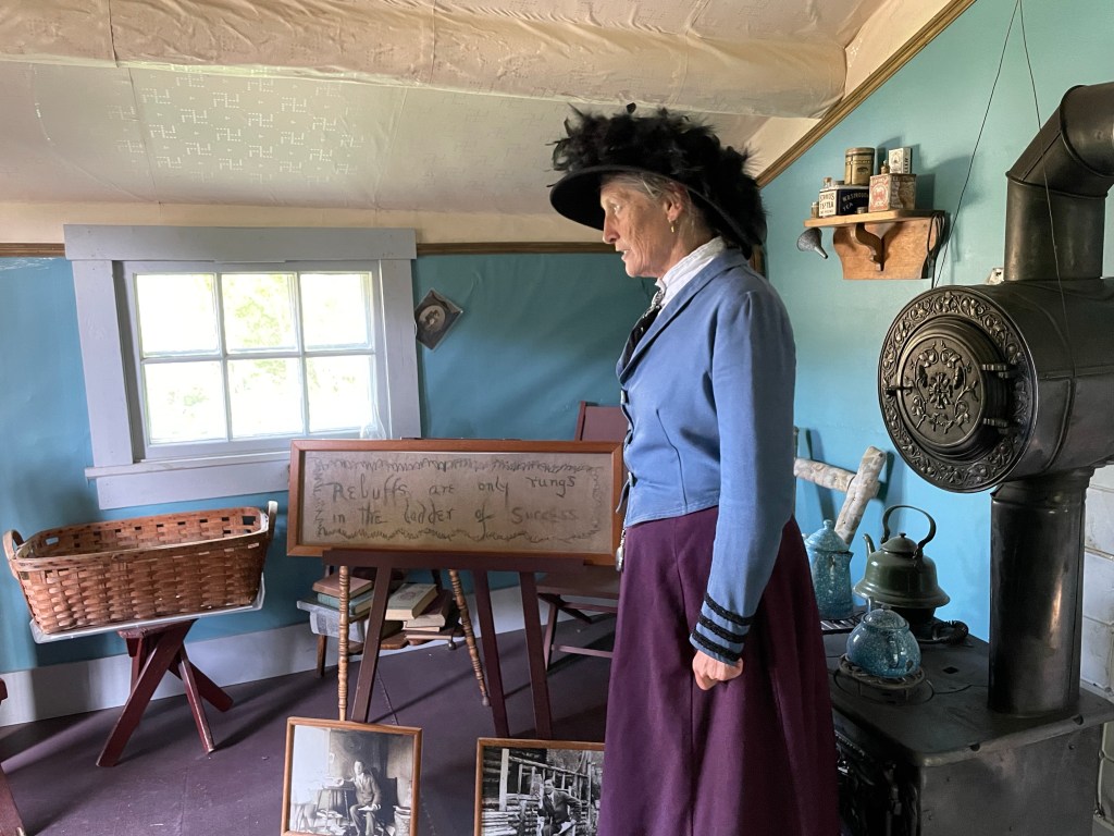 After that we headed up to Robert Service’s cabin. Here we joined a Parks Canada interpreter who was giving some great talks about his life here in the Yukon. The cabin was “cozy” to say the least, but as she said, it was above the flood plain and below the fire line and lasted quite well!