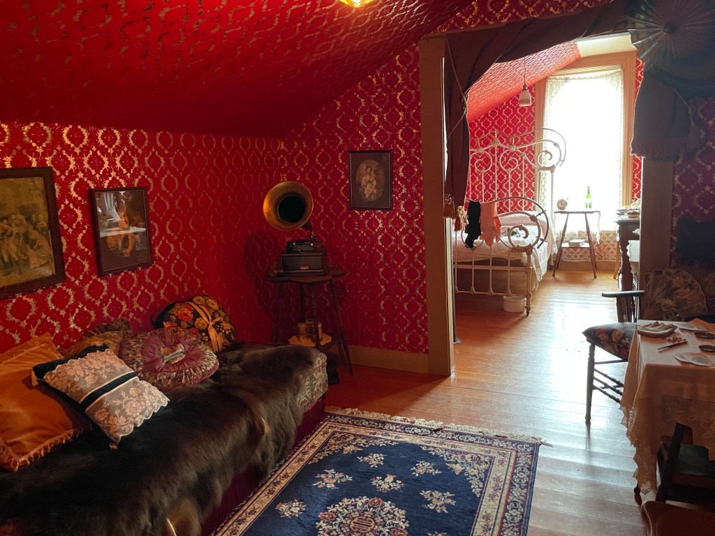 We visited a bank ( British North America branch) a saloon ( the Red Feather) the Post Office and the theatre where Klondike Kate was the main attraction!