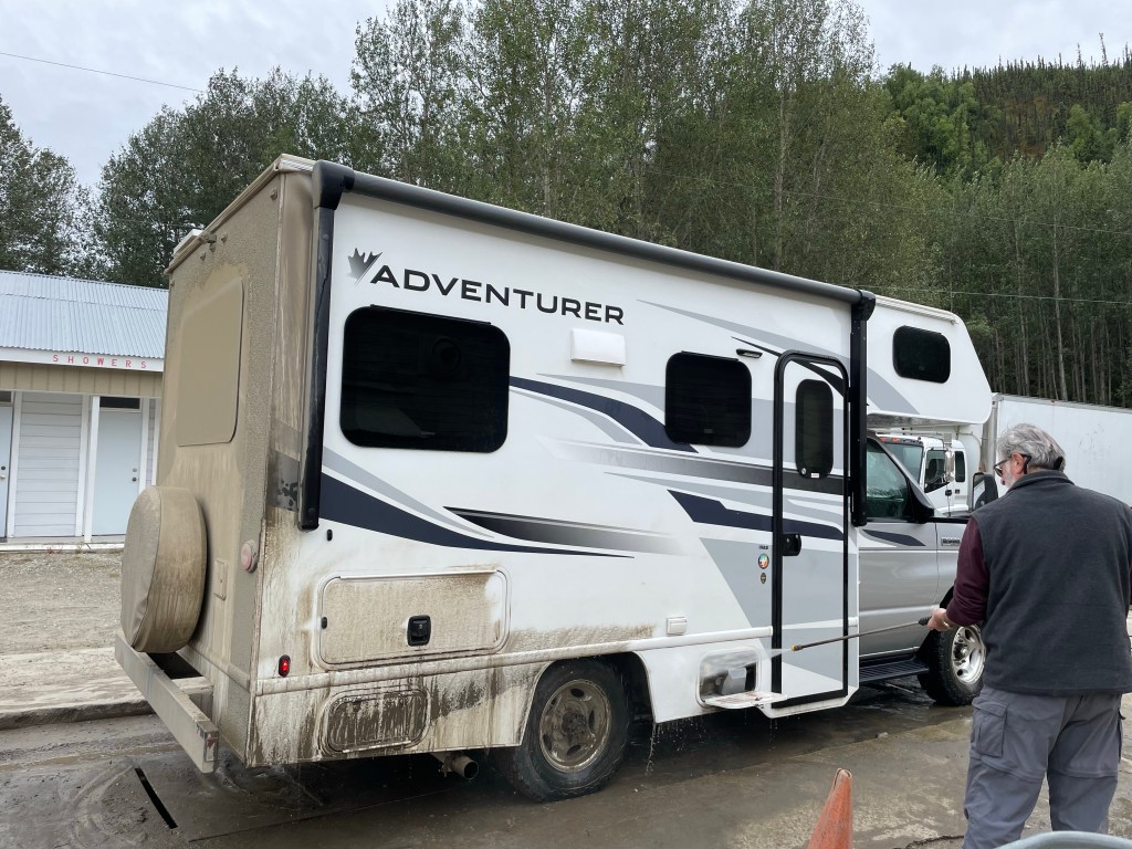 Once there we went back into the visitor’s centre for the WiFi ( nothing outside of Eagle Plains on the Dempster) and got caught up on emails and such. We also spoke with a wonderful staff person who gave us great advice on camp groups in and around Whitehorse. We decided to change our plans of camping in Dawson and simply filled up with gas/propane and fresh water for our travels.