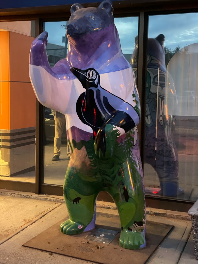 We drove on through the hills with a mission to make the distance. About 8 hours of driving in total and we had a hotel downtown and got in just in time for dinner. We went to a fun pub called Nancy O’s, a short walk from our hotel. Along the way, we saw some interesting bears…reminded me of the statues Nancy Howcroft and I saw at the Botanical Gardens in Phoenix.