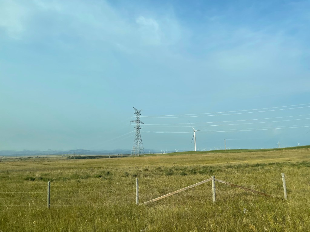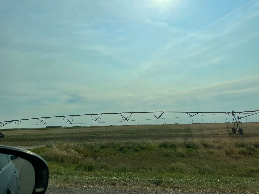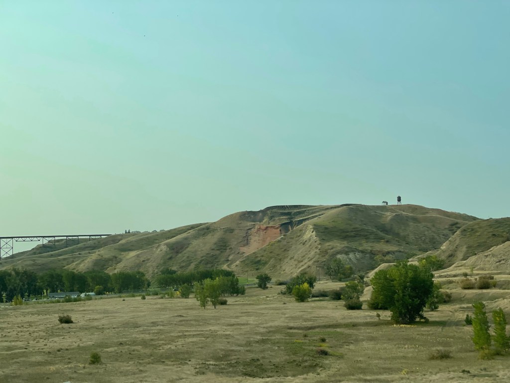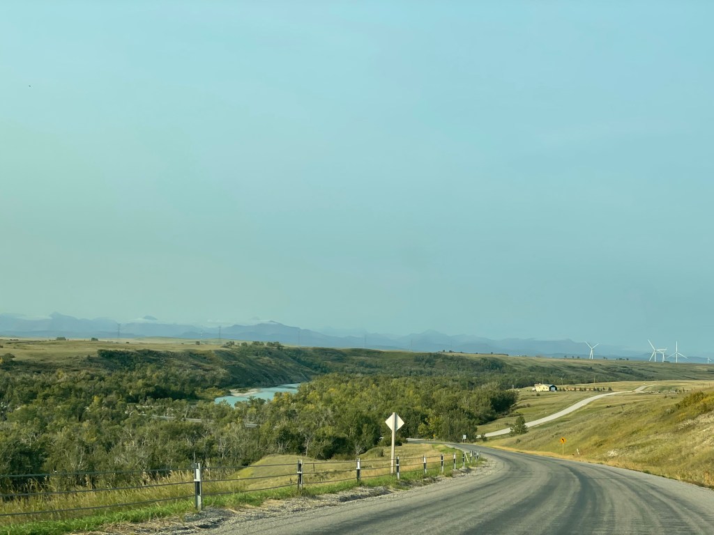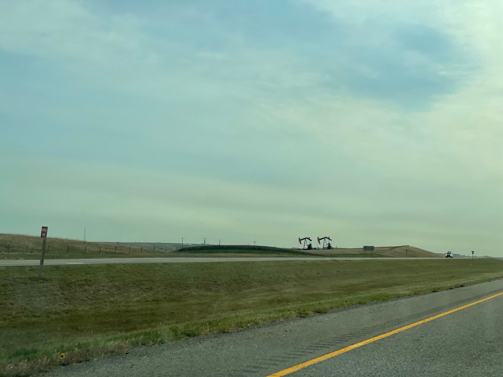 As we left the homestead, we headed east into the rolling hills of the Alberta prairies, crossing coolies and driving by oil wells drilling in the fields.
