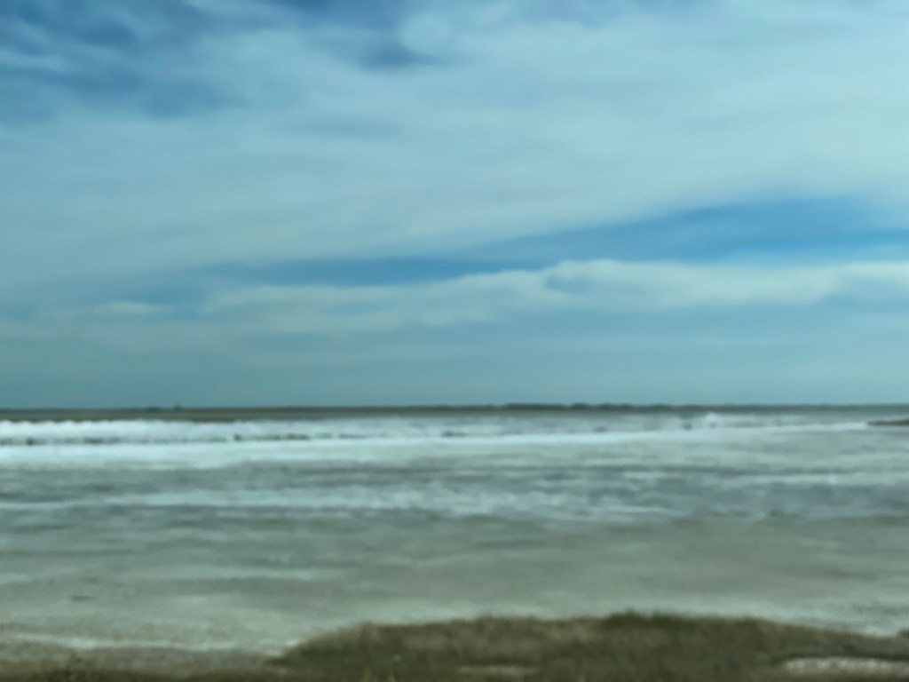 As we crossed the prairies, we could see ponds that had dried and a white powder was left in the wake of the water. The picture below looks more like an ocean shore than a large dry depression that was formerly a spring pond.