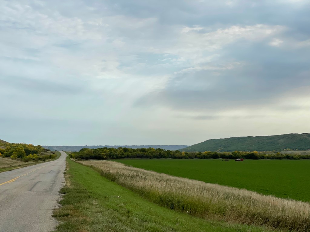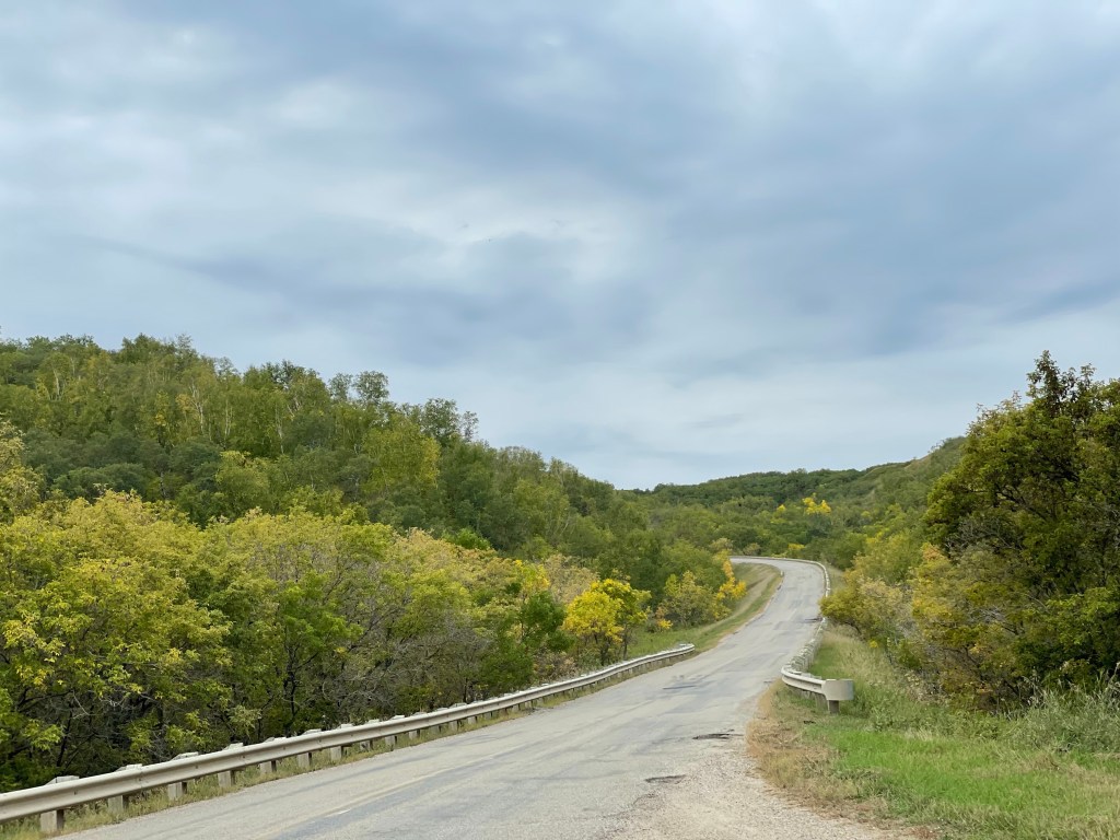 Before we left Saskatchewan, we did a detour on a scenic drive of the Qu’Appelle Valley. We went about 25 kms north of the Trancanada and then drove east, southeast along the valley and then south again to the TransCanada. What a beautiful valley! Dotted with farms and changing colours it was a site to behold!