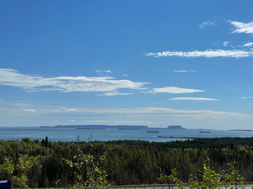 We left Dryden thinking we might stay in Thunder Bay, perhaps at Kakabeka Falls Provincial Park, but it was only a short (3-4 hours) drive so we decided to push on to the National park just south east of Marathon.
