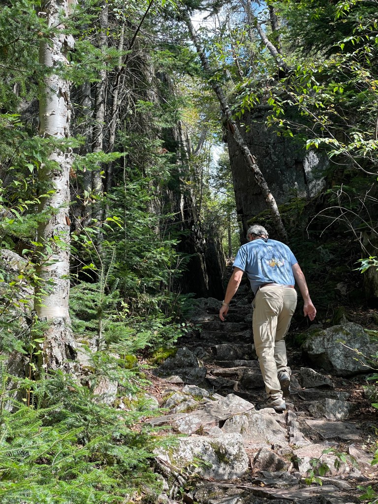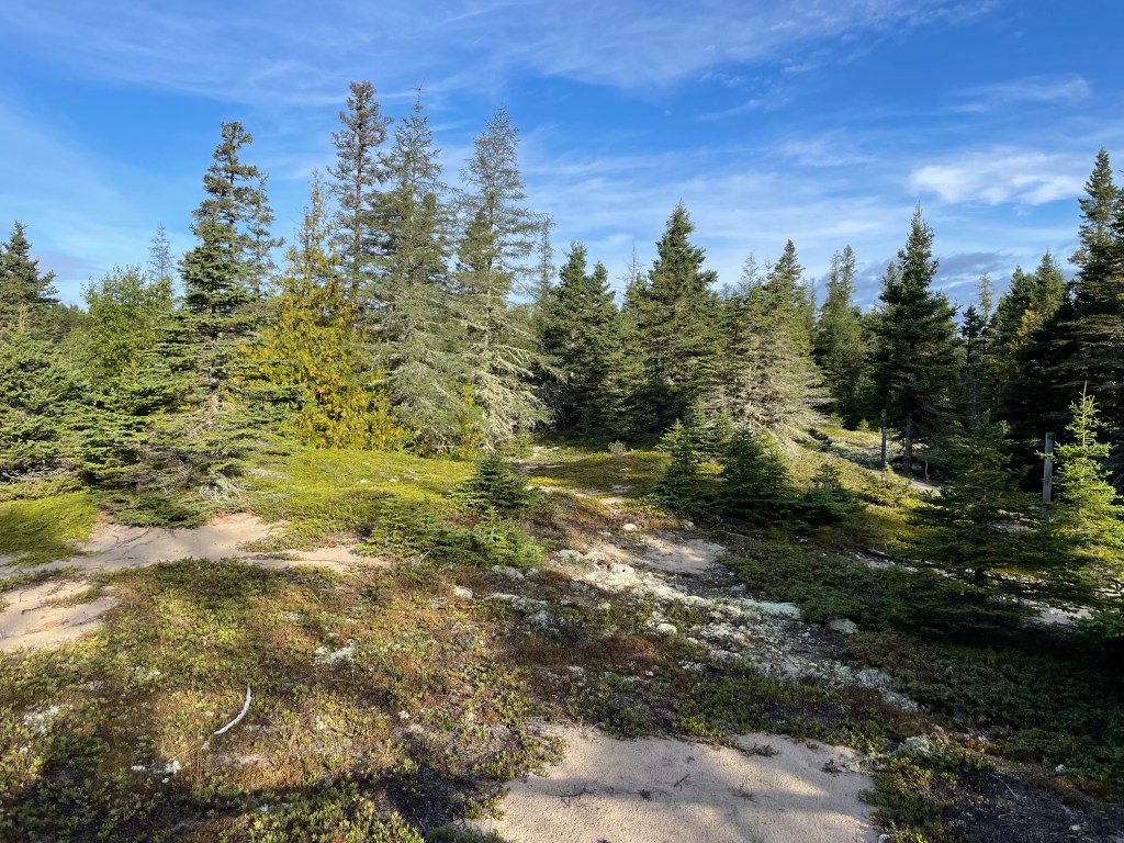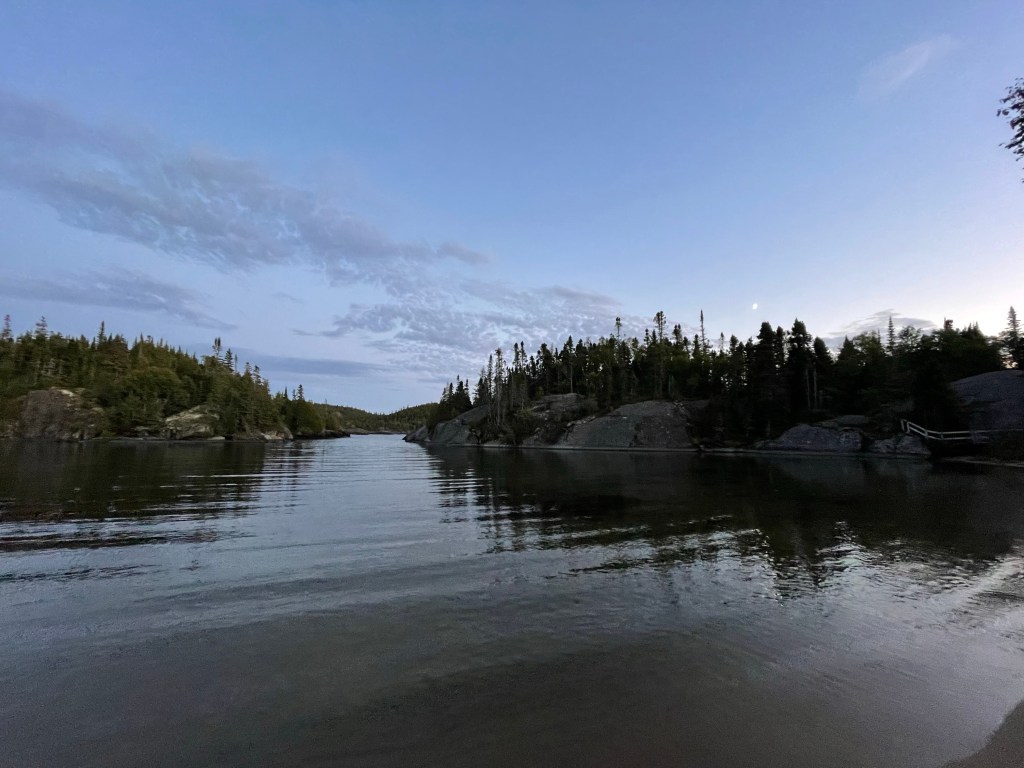 I thought we might be able to get an oTENTic on spec. Unfortunately, when we got the the gatehouse of Pukaskwa Park at 6 pm, we learned the gatehouse closed at 4:30. While we could self check in for a regular site, we couldn’t get an oTENTic because we couldn’t get a key! My plans were dashed! We now had to find a vacant site, unload the car, set up the tent, make supper, clean up and pack away the food and food gear all before we lost daylight at 8:15! I’m afraid I wasn’t pleasant company for my patient husband as I insisted this was the last tent setup I was willing to do this trip! I did manage a short walk to the boat launch and beach while Dan did dinner cleanup. What a beautiful park! All I could think of was how much I would be missing because my endurance for camping had come to an end!