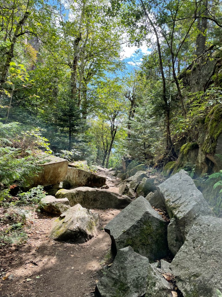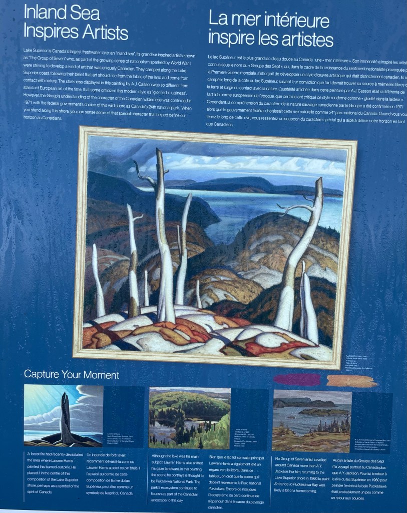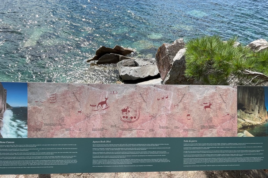 As we headed south and east along the shores of Lake Superior we were awestruck by the beauty of this rugged part of Canada. Just South of Wawa we came to Lake Superior Provincial Park. We decided to stop to explore the Agawa Pictographs as well as a dramatic canyon.