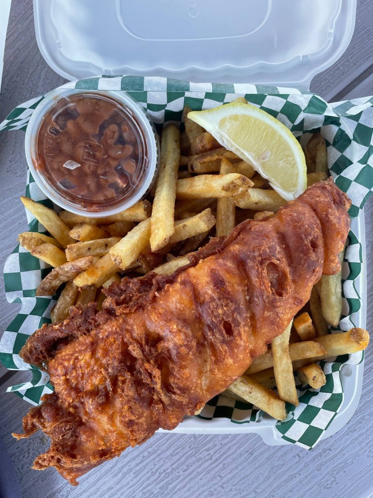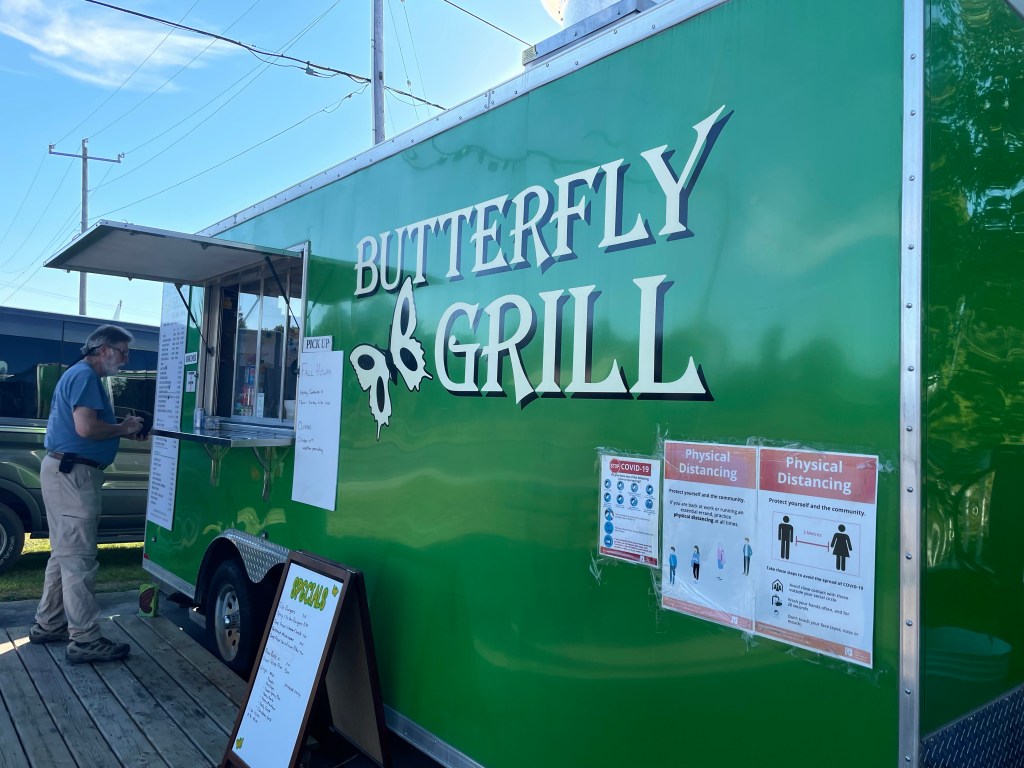 We had just a short drive into Sault Ste Marie. From there we were on the hunt for a fish and chip place recommended to us by our friends Brenda and Chris. We had tried to find it on the way out, but missed it. This time we were ready for the Butterfly Cafe in Blind River! Dan and I ordered the local caught pickerel and chips and were certainly not disappointed!