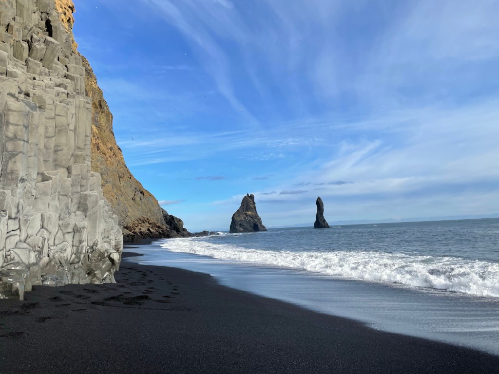 Once I got back to the room, Dan was up and raring to go. Our hotel had several days trips that they recommended, and we decided we would do the “Southern Shore” of the circle route where we visited several beautiful waterfalls, one that even gushed into a hidden canyon; a old Icelandic settlement; Iceland’s version of Pearce rock and the black sand beach and basalt columns at Reynisfjara.