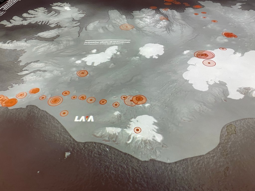 From there we headed south again to join up with the highway that would take us out towards the falls that we saw yesterday. Today, we planned a stop at the Lava Centre to learn something about the dramatic formation of this isolated island. Our visit included a movie that depicted the volcanic activity throughout history…no words, making it understandable in any language!
