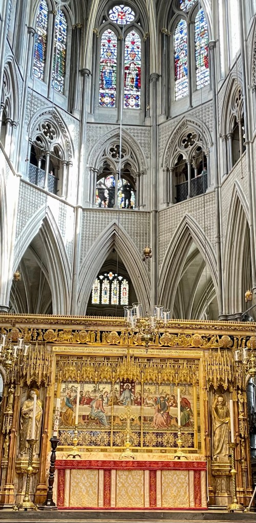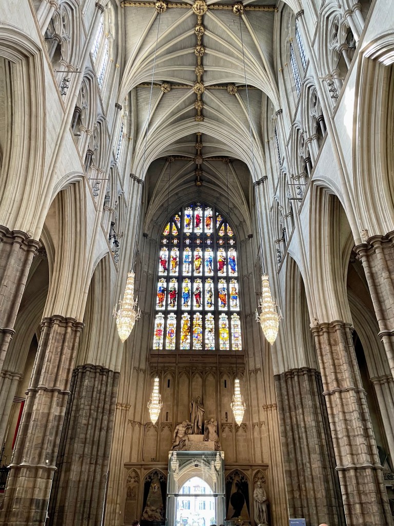 Next on our list for the day was Westminster Abbey. I have been to this place several times, beginning when my mother brought me at the age of 15. A magical place, heaped in history…and soon to be the scene of another historic event, the coronation of King Charles III. It’s funny, I learn something new each time I visit. This time it was clearly a destination for every visitor to London…Boy was it crowded!…and expensive to visit as a commission rate of 24 GBP per person! Still a magical place unlike any other church in the commonwealth! Its origins date back before Druids when the site was used for goddess worship…I’d say there’s some pretty strong energy running through the ground there!