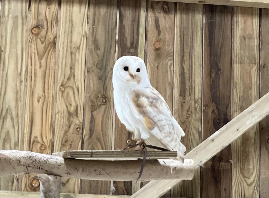 We left there and began heading towards our destination, but we were actually going to arrive over an hour early! Luckily, enroute we saw a sign for a Screech Owl Sanctuary and decided to check it out. What an incredible little place. Dan and I were able to peruse the path along which they had a variety of owls and small other raptors. They either rescue them or breed them. (Although the rescue part has been put on hold throughout the high risk period of the bird flu…it appears they are almost ready to restart this program once again)