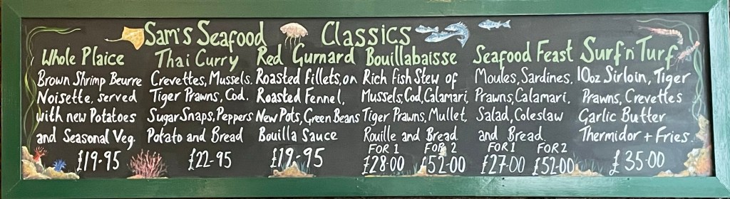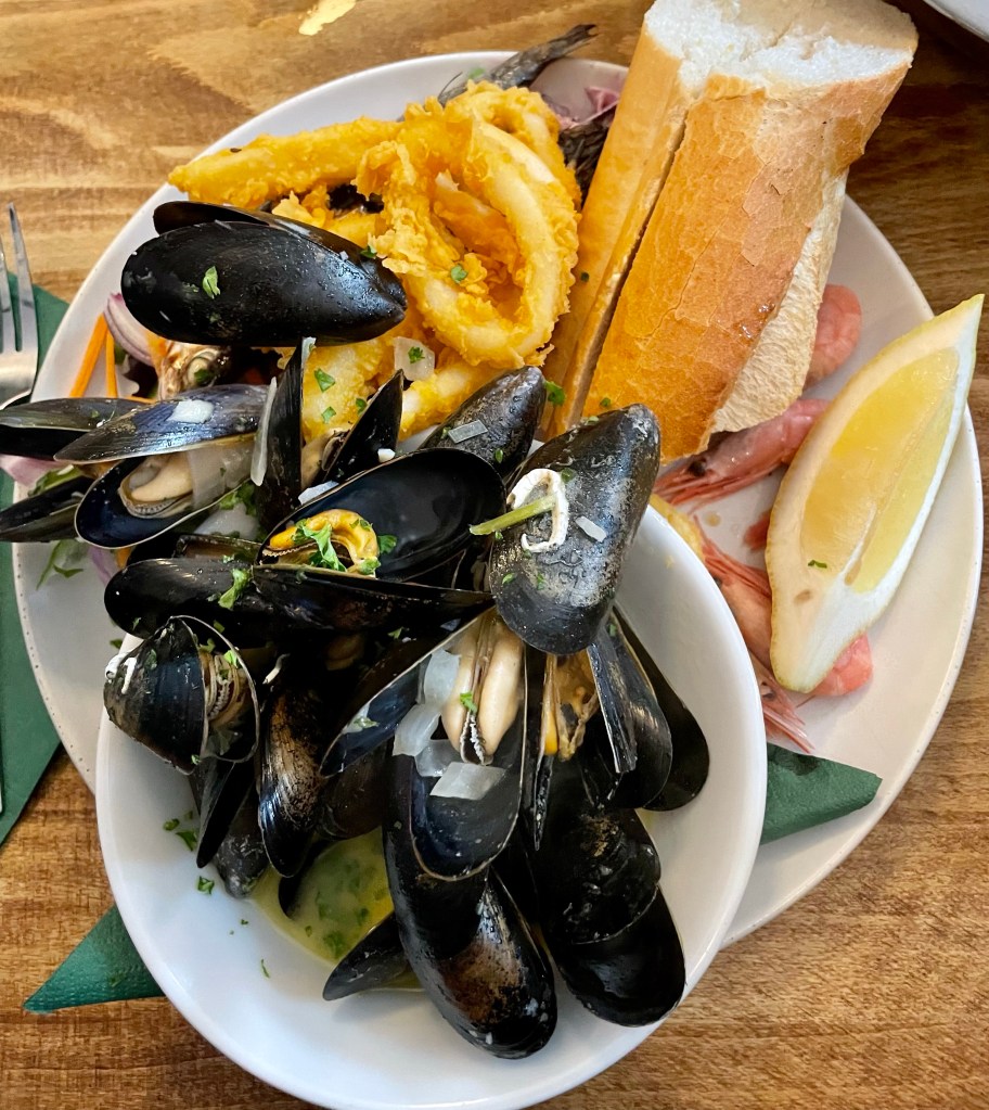 After a trek through the world of plants it was time to get some lunch. Sue had recommended a charming coastal town called Fowey. We headed there and wandered to streets until we came to Sam’s Fowey restaurant, specializing in seafood. It was indeed wonderful!