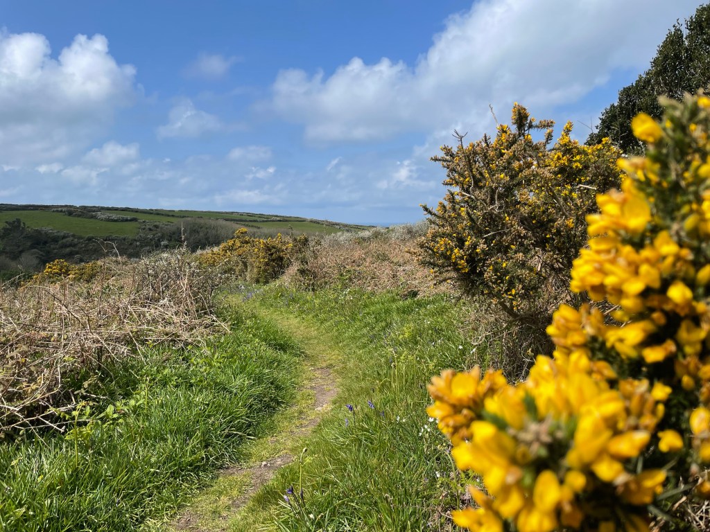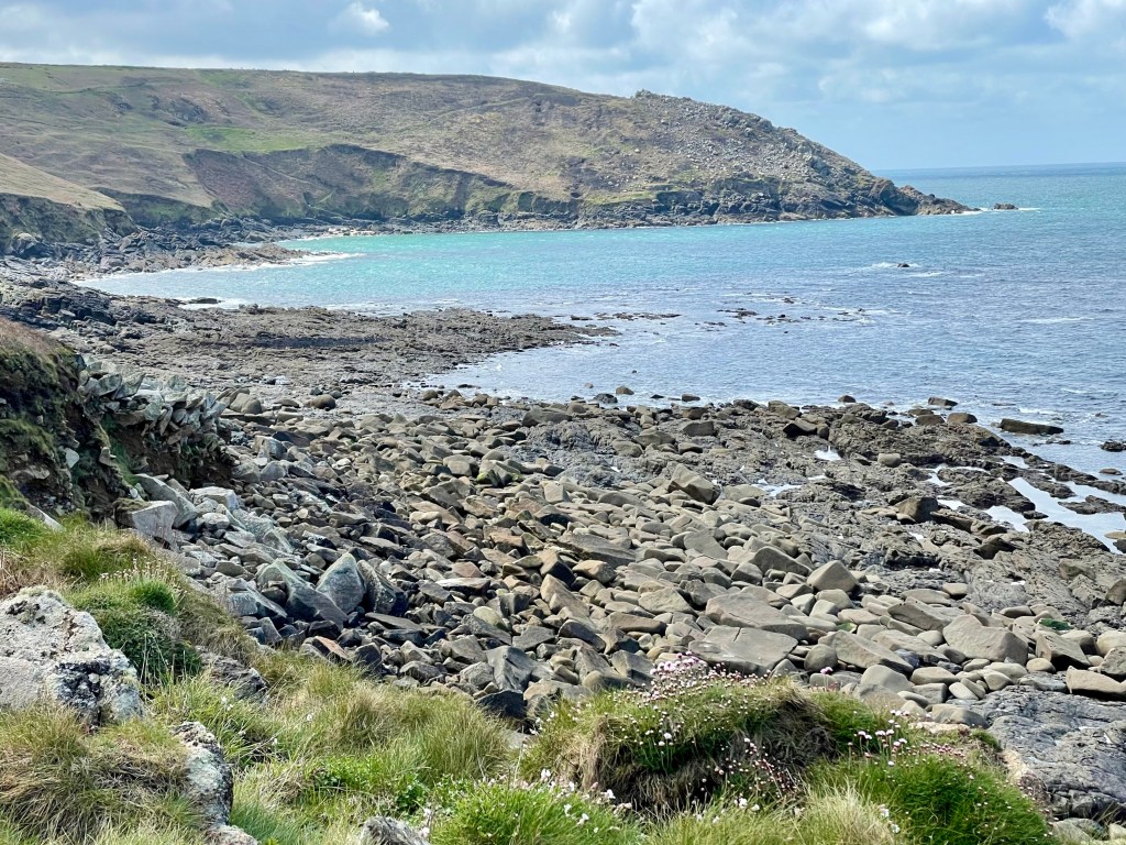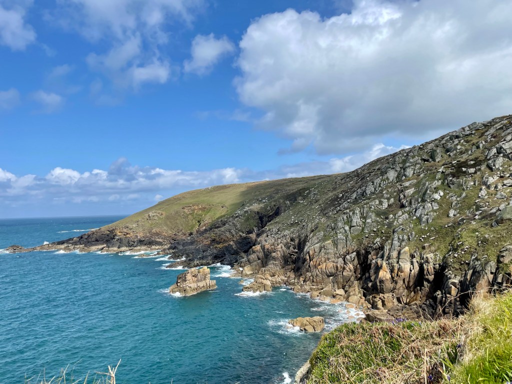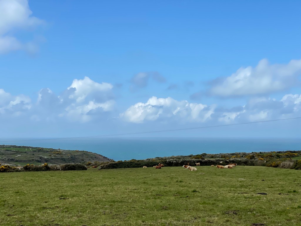 We decided on the short loop instead of the long one that would have had us walking to St Ives and back…this was supposed to be about 8.5 km…turned out to be more like 11km, but who’s counting! Anyway, the pasture walking was lovely and we made it to our turn north to the coast in about 45 min. I thought “Great!” This will be a quick walk and then on to St Ives. And then we got to the coast! I should have taken the hint when a woman we met on the trail said that she didn’t do the coastal route because the days of her rock scrabbling were behind her.