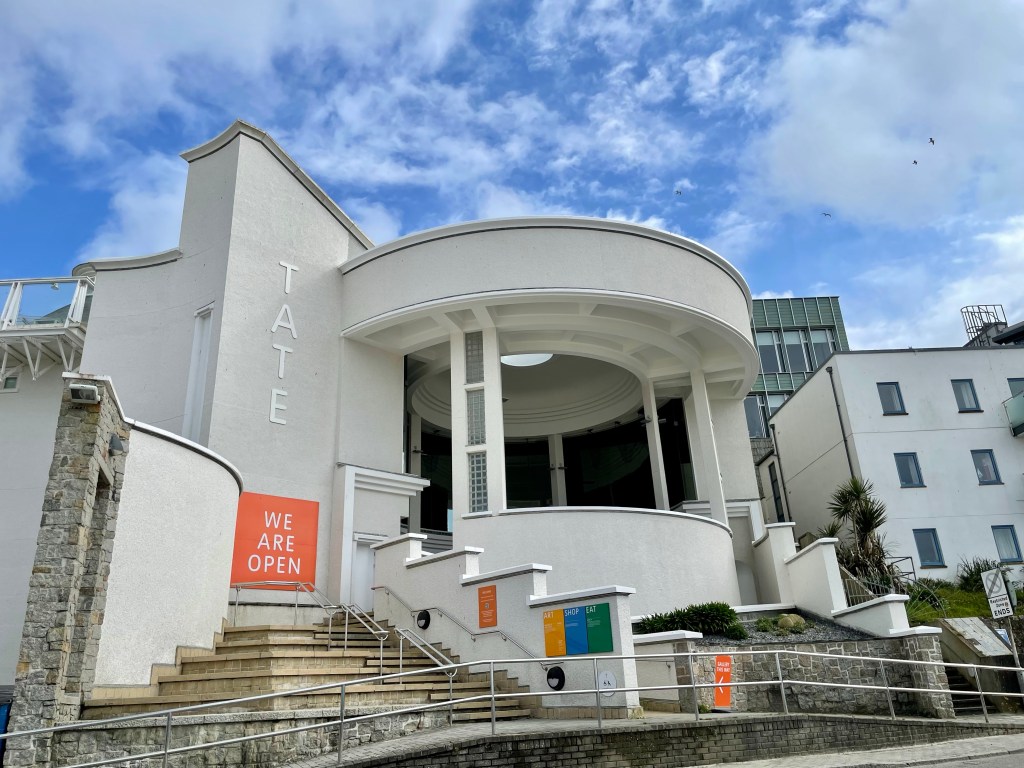 We had thought we would grab a quick lunch at the pub, but missed the last serving by 15 minutes! On we went to St Ives, where I wanted to have a quick visit to the Tate Modern, St Ives. This is a lovely community purportedly attracting contemporary and modern artists included Barbara Hepworth around the time of the Second World War. The gallery is small, but makes for a striking building on the shores of a massive beach.