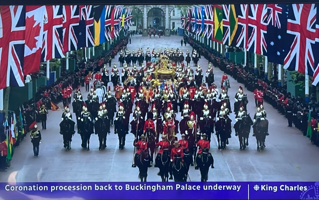 Saturday was a lovely day, although not so lovely in London. We did a quick trip out to get some fresh backed goods for the day and then it was time to tuck in and watch the coronation on the television. Being Canadian, we opted to watch the CBC coverage, although everything from the cathedral would have been from filmed by BBC I assume.