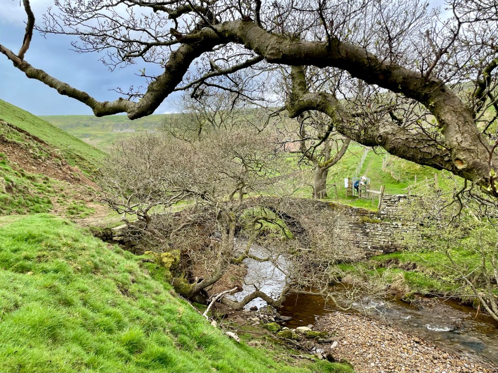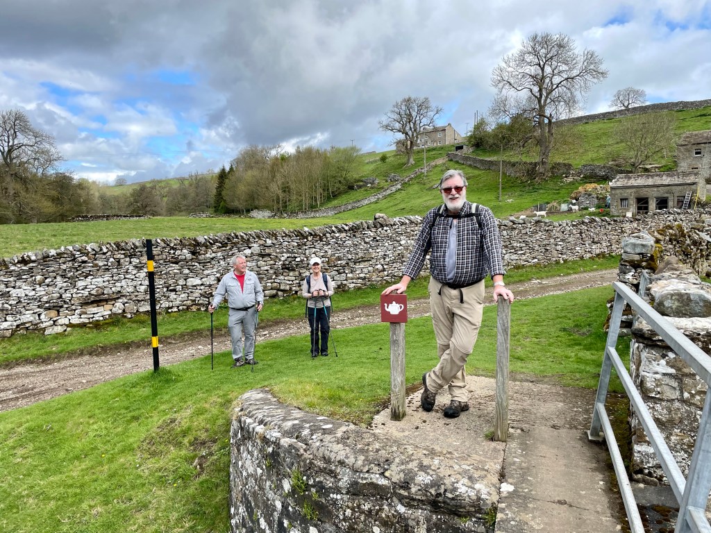 We had a leisurely start with a lovely 6 mile walk from Marsh through fields beside the Swale tributary and climbing up, only to descend once again to our turning point at Helwith. The day was warmer than we have had and we thoroughly enjoyed the fine day ( although the skies continued to threaten us from afar!
