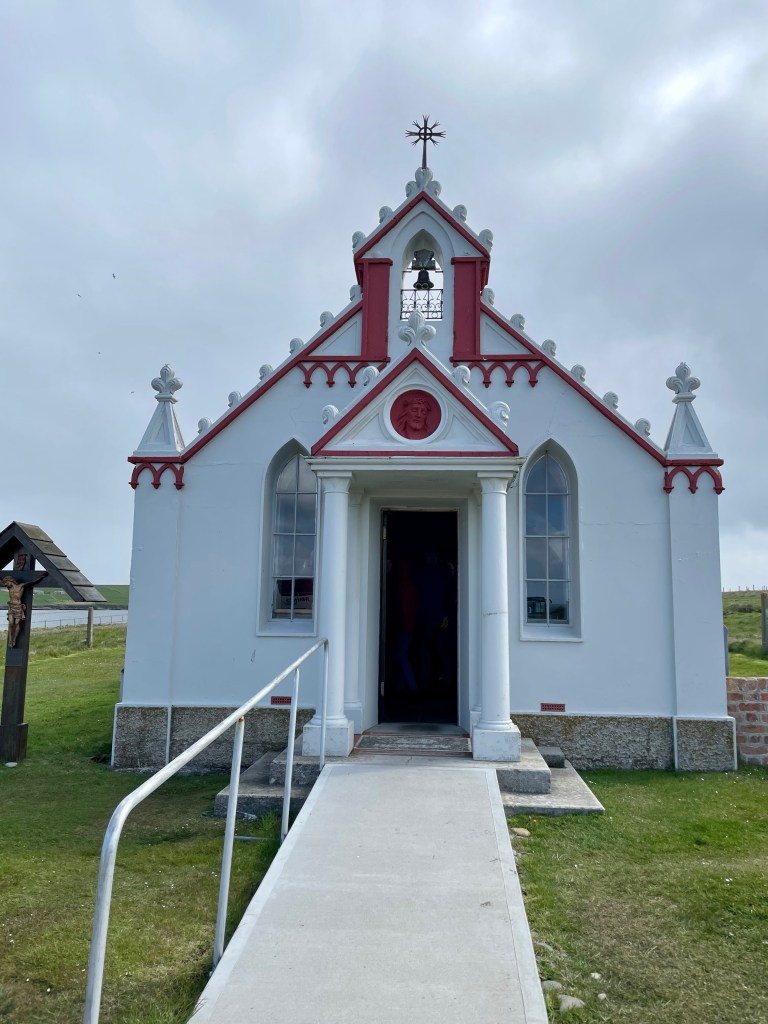 Undaunted, we decided to do the islands we could reach via bridges. We headed south towards Lamb Holm, Burray, and South Ronaldsay; all reachable by bridges built during the Second World War fondly named Churchill Barriers. These crucial bridges protected Scapa Flow, the second largest natural port in the world and home to the British fleet during the Second World War. It seems that a number of the islands of Orkney surround a large body of ocean making it a perfect deep water harbour. During wartime it protected, or held fleets of boats; today is is a welcome refuge for drilling rigs in need of repair or refurbishments.