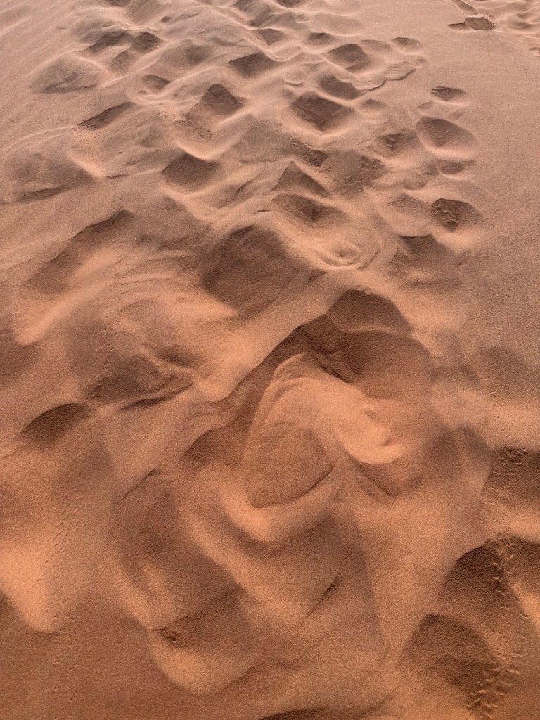 We ordered out breakfast and lunch to go, packed up the car and headed off to the dunes for one last look.  They are every bit as impressive from the ground level, although we didn’t arrive in time for the spectacular sunrise shadows that we saw the previous morning.