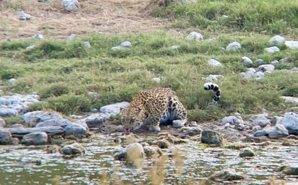 Then all of a sudden our guide drove like crazy ( understand the maximum speed int he park is 60KPH. ( I’m sure he kept it at that) we eventually came to a water hole that had several vehicles looking on. And there she was, a magnificent leopard having her morning drink.