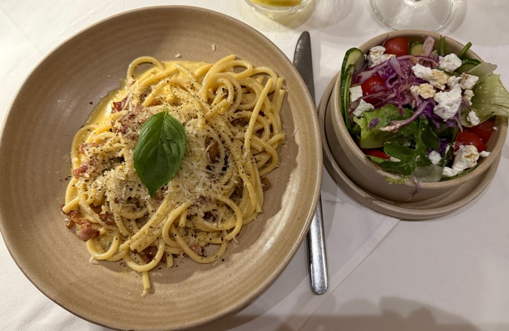 Back in our hotel, after a good rest, we headed out for our last night on the town in Cape Town. tonight we tried the Zenzero Restaurant with wood fired oven specialties. Dan had been craving pizza, and I had a spicy Buccatini Carbonara; both were delish!