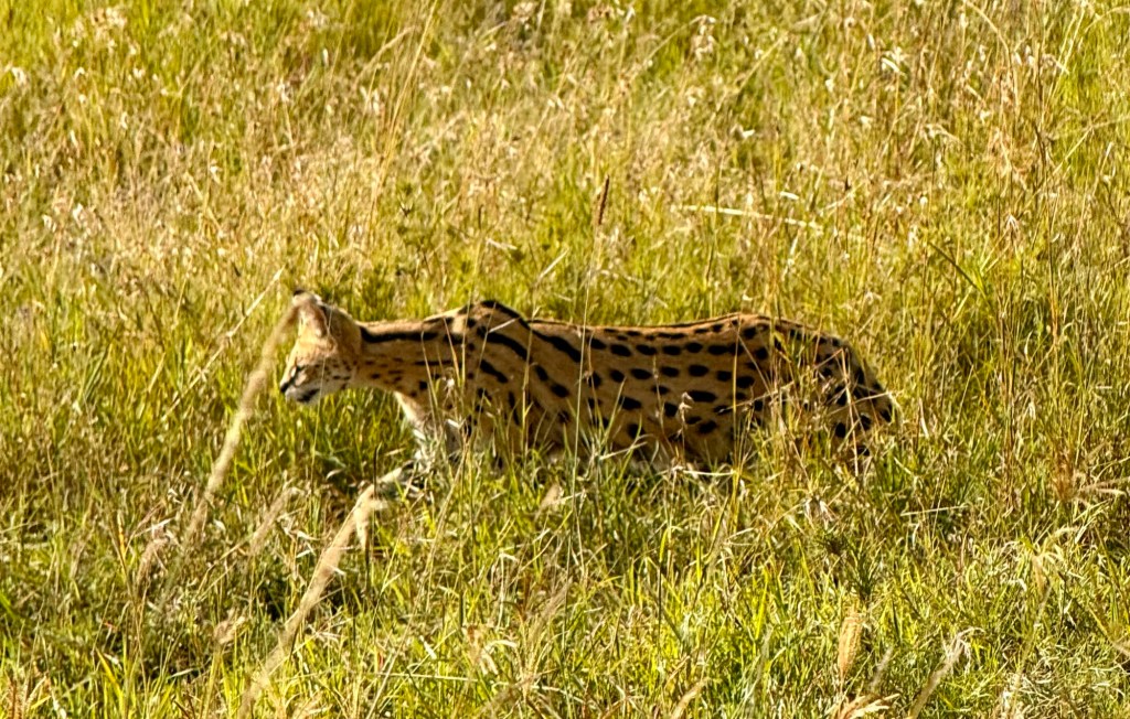Yesterday was such an amazing day, we thought we might just see a few familiar animals, but David was on a mission to find his favourite cat, the Cheetah! No sooner had we turned onto another road, but we found a Servat that was roaming for food.