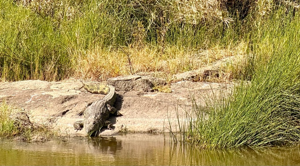 A short while later we passed a pond… no hippos, but we did catch this giant sunning himself.